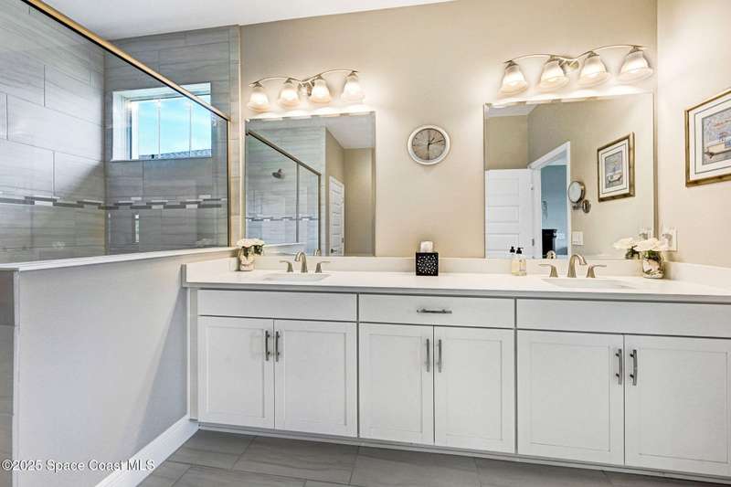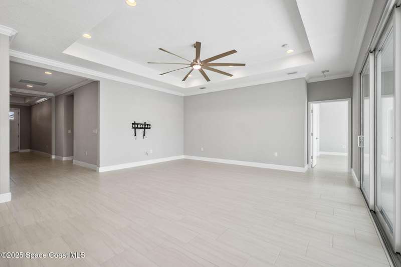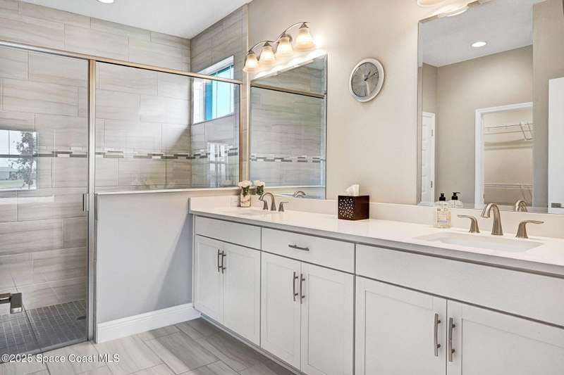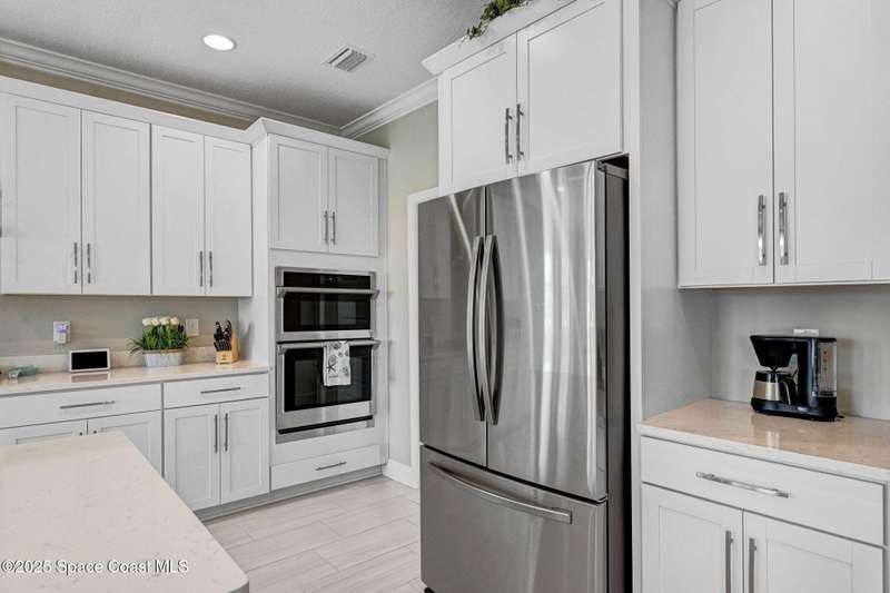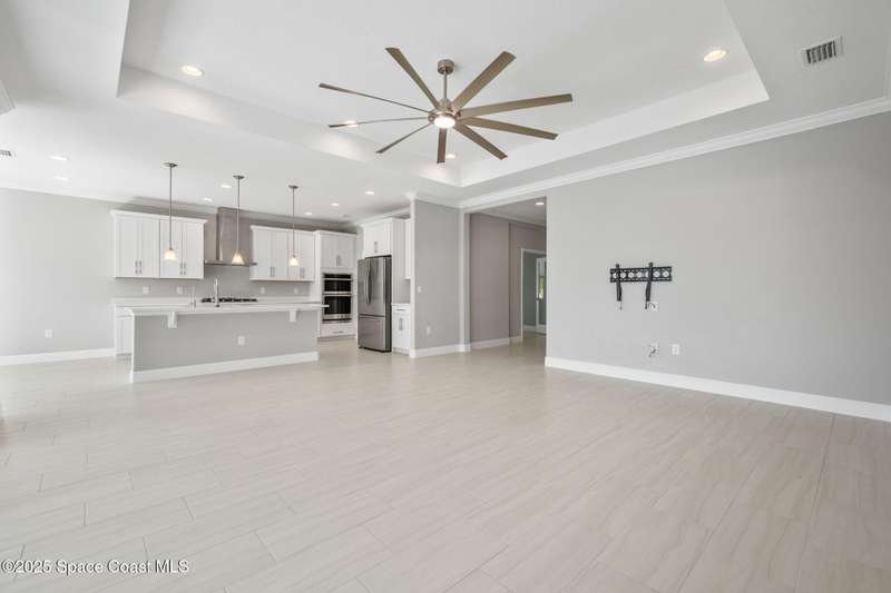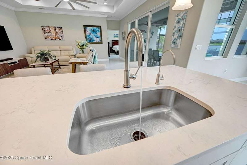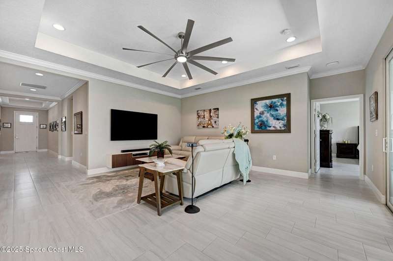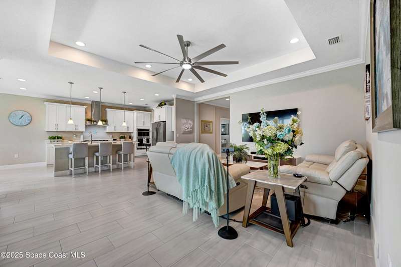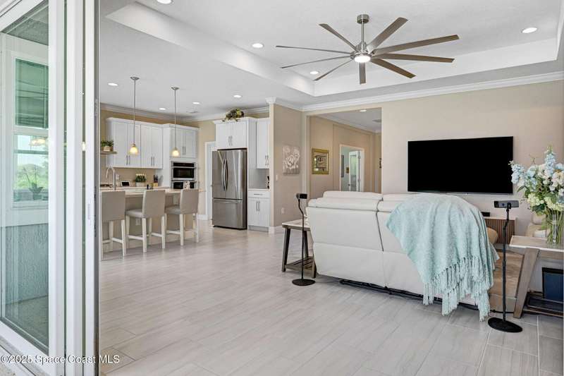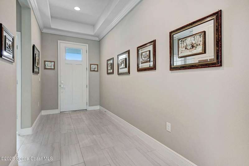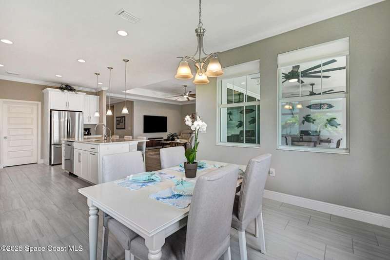 Welcome to this stunning 2023 home, featuring 3 bedrooms + office, 3.5 baths, spacious 3-car garage. Located in Pangea Park community, this modern home offers a peaceful, well-designed split floor plan with million-dollar lakefront view + large backyard to build your own POOL. Each bedroom has WIC, full bath, upgraded fans. The gourmet kitchen is a chef's dream w/Samsung SS appliances, upgraded 42-inch cabinets, quartz countertops, large island perfect for entertaining, huge walk-in pantry. The living room includes tray ceiling with upgraded recessed lighting + 84-inch fan. Enjoy serene lake views from the extended lanai with panoramic screen. Office features glass French doors and 2 windows. The Master suite features a tray ceiling + massive closet. The laundry room is equipped with Samsung Smart washer, dryer, sink. Garage has epoxy flooring, heavy-duty pull-down stairs, utility sink. Tile floors throughout, gutters all around, Termite Bond, 10-year Builder's Structural Warranty. Located in the maintained section of Pangea Park, this property offers a worry-free lifestyle. The HOA covers all lawn maintenance, including mulching, weeding, and sprinkler care.Residents can enjoy fantastic community amenities, including a pavilion, pool, playground, and tennis/pickleball courts.The home's prime location puts you just minutes from the new Publix and Costco, as well as The Avenue shops, dog parks, the Brevard Zoo, and a variety of dining and golfing options. For travel and day trips, it's less than one hour to Orlando and about 30 minutes to Port Canaveral.
