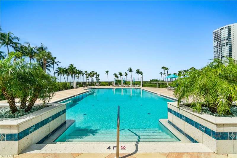Indulge in the Naples beachfront lifestyle at the prestigious Monaco Beach Club of Park Shore, where this spacious residence offers 3 bedrooms, 3.5 bathrooms, and 2,664 square feet of living space. The split-bedroom floor plan provides abundant natural light and views of both the Gulf and Bay, with additional screened balconies extending from the primary suite and guest bedroom. The expansive primary suite ensures exceptional privacy, while the living and dining areas flow seamlessly into the kitchen and lanai, creating a welcoming setting for everyday living or entertaining. Equipped with electric hurricane shutters, this residence presents an excellent opportunity to personalize and modernize to your taste. Monaco Beach Club, situated on over 6 acres of prime beachfront property, offers a beautiful lobby, a fully equipped fitness facility, and a spacious hospitality room. Additional amenities include a resort-style pool and spa, grilling area, tennis courts, pickleball, concierge ser