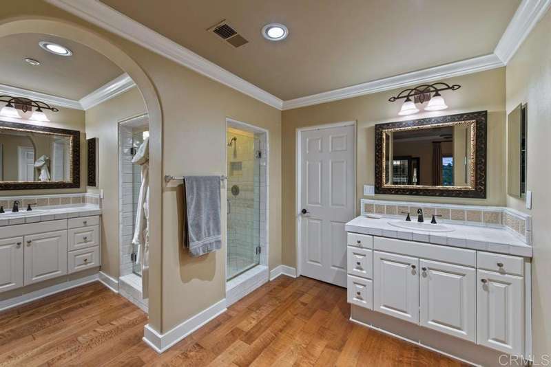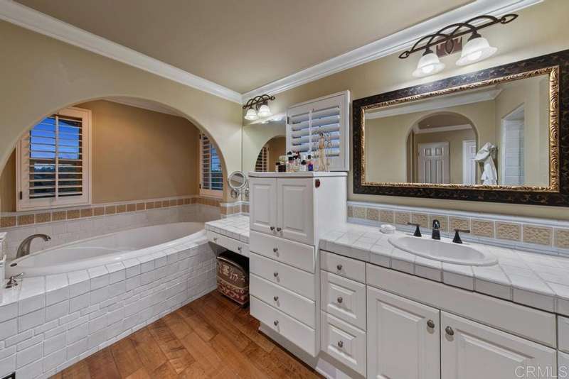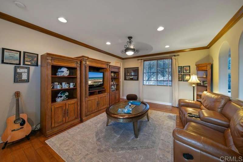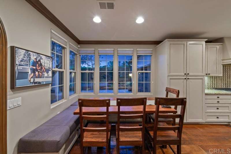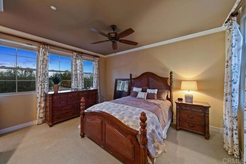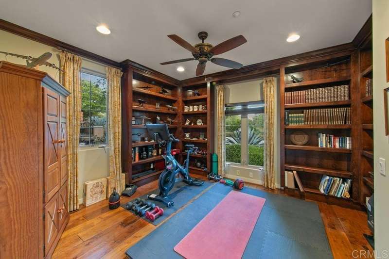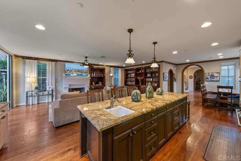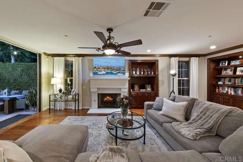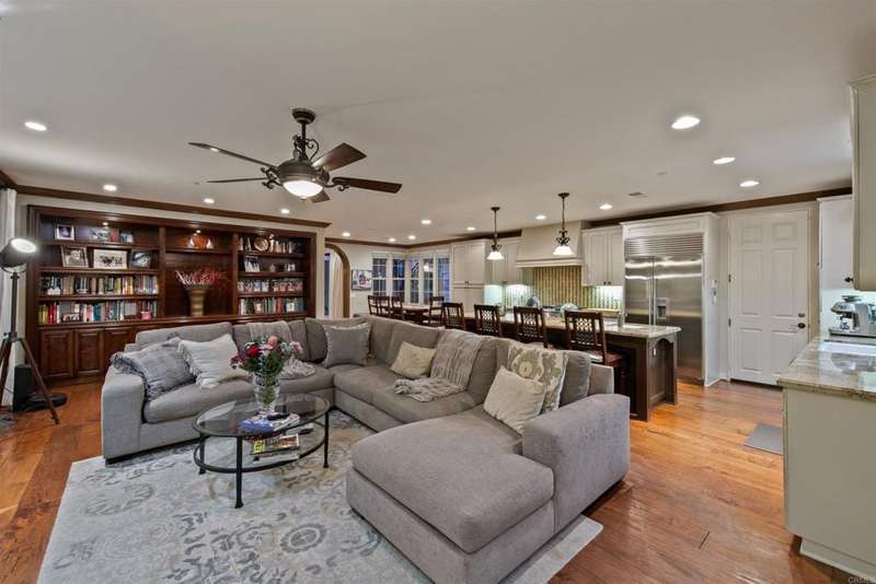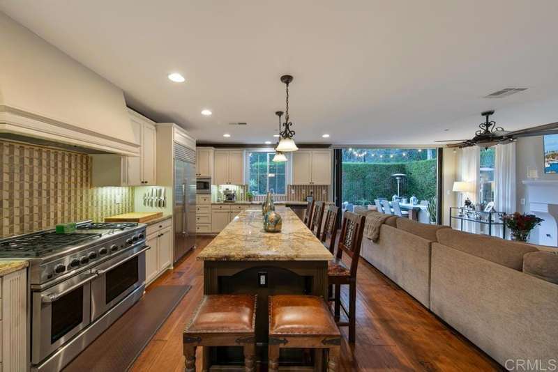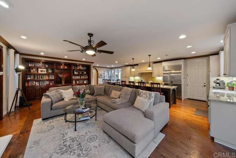 Welcome to this stunning former Santaluz model home, lovingly updated with custom touches. Enjoy sunset vistas over the canyon from the front of the home, while the private backyard is an entertainer's paradise. Gather around the outdoor kitchen, fire pit, or under the cantina lights for unforgettable alfresco dining experiences. The interior boasts Richard Marshall wood floors, plantation shutters, built-out niches, and wood shelving in the library. The open living concept seamlessly connects the family room, kitchen, and nook, with a folding Panoramic door with retractable screen door leading to the expansive backyard. The chef's kitchen features a large island, top-of-the-line appliances, including a Subzero Refrigerator / Freezer and a DCS commercial-style range. The primary suite enjoys a private balcony with sunset views and a spa-like bathroom with an oversized customized closet. Additional highlights include a finished garage with additional storage, bonus room/loft/5th bedroom and a downstairs office with two secondary en-suite bedrooms upstairs. This private retreat offers tranquility and seclusion, with a private gate and serene surroundings. Santaluz is a premier private, gated golf and lifestyle community, offering sweeping views, hiking and biking trails, and preserved parkland. The Santaluz Club membership, available separately, provides access to an array of amenities, including a private 18-hole golf course