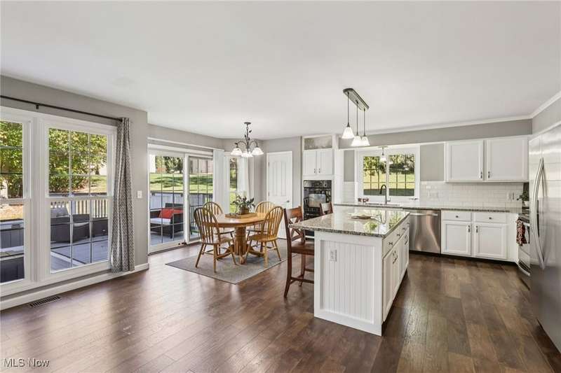Move right into this light and bright updated home located on a quiet cul-de-sac in the sought-after Meadowood neighborhood. The gorgeous brick and stone elevation creates a welcoming first impression for your guests. Beautiful Pergo floors flow through most of the first floor, giving the home an open and cohesive feel.The foyer opens to the dining room w/ wainscoting & the spacious living room featuring floor-to-ceiling windows, built-ins, and a striking double-sided fireplace?perfect for cozy gatherings. Cook up a gourmet meal and entertain family and friends in the fabulous kitchen with granite counters, double ovens, stainless steel appliances, a large island with seating, a deep SS sink, and a pantry closet. The adjoining hearth area with a fireplace is ideal for relaxing after a busy day or enjoying your morning coffee. Step outside to the private, tree-lined backyard with a newer deck and built-in seating?perfect for outdoor dining, entertaining, or simply unwinding under the stars.The luxurious first-floor primary suite offers a vaulted ceiling, abundant natural light, and windows overlooking the backyard. The beautifully updated ensuite bath features dual vanities, a tiled shower, LVT flooring, skylight, garden tub, and a spacious walk-in closet. An updated powder room and a large laundry room off the back hall complete the first floor.Upstairs, you'll find two additional bedrooms, an updated hall bath, and a generous linen closet. The unfinished lower level provides excellent storage and is ready to be finished to suit your needs.This move-in ready home offers timeless design, modern updates, and a warm, inviting feel throughout?everything you've been waiting for in Meadowood! See supplements for a full list of updates.