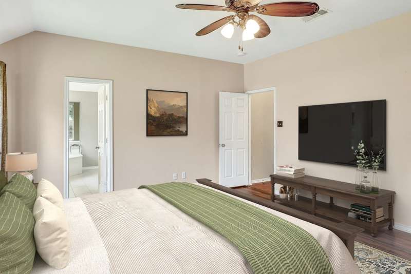 Amazing drive-up appeal at this one-story home on large corner lot in Glendover Park. Beautiful hardwoods abound throughout most of the open floorplan. You will love the attention to architectural detail in the formal living and dining rooms. The spacious family room has a striking brick fireplace with gas logs, and a magnificent view of the backyard through a wall of windows. The chefs island kitchen has tons of cabinets and counter space, gas cooktop, granite, built-in microwave, pantry, and is open to the family room. The primary suite, separate from other bedrooms, includes dual vanities, separate shower and garden tub, and a large walk-in closet. Recent updates include new flooring in bedrooms, and some paint. Home also features a large backyard and recent board on board fence. Awesome location in Kerr Elementary and Ereckson Middle School boundaries. Close to great restaurants, Costco, and Sprouts.