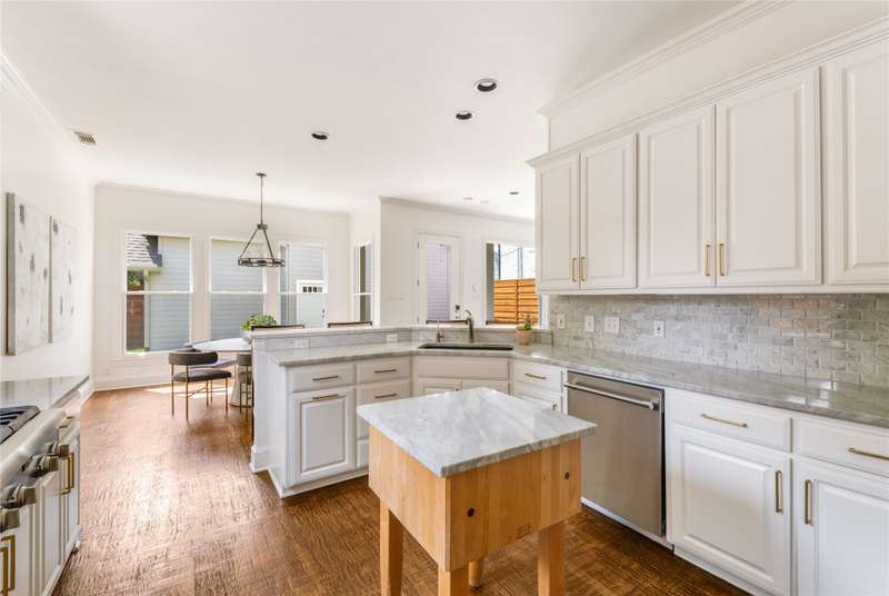 Welcome to 3101 Cornell Avenue, a beautifully updated corner-lot home featuring an oversized three-car garage with 858 SF guest quarters above and a newly turfed backyard with a putting green. This stunning property offers 4 bedrooms, 3 full and 1 half baths, formal living and dining rooms, and a private study with French doors and built-ins. The newly renovated kitchen showcases marble countertops, double ovens, a SubZero refrigerator, gas cooktop, butlers pantry, and a breakfast bar opening to the family room with views of the backyard. All bedrooms are conveniently located upstairs with the laundry room, including a large primary suite with dual vanities, jetted tub, separate shower, and spacious walk-in closet. Recent upgrades include a new roof, Pella windows throughout, two new Lennox HVAC units, water heater, attic insulation with solar fan, and new landscaping in the front and side yards. Ideally located just one block from the Katy Trail, within walking distance to Armstrong Elementary and SMU, and close proximity to shops, parks, and restaurants, the location is unbeatable.