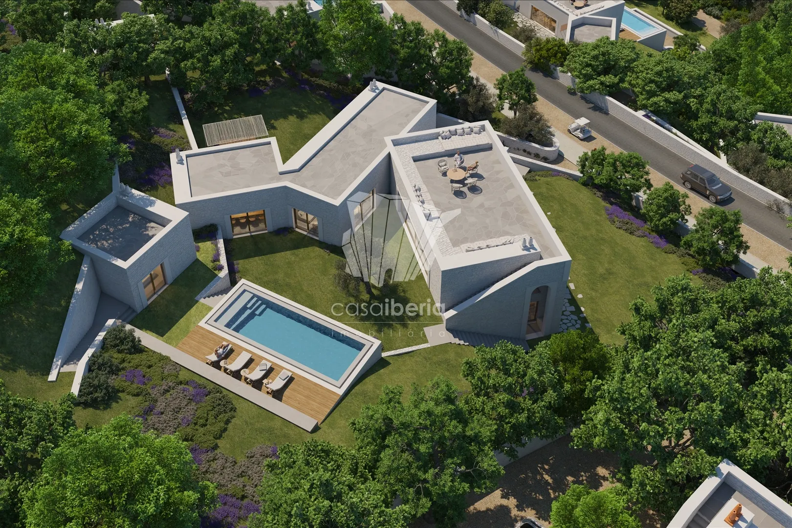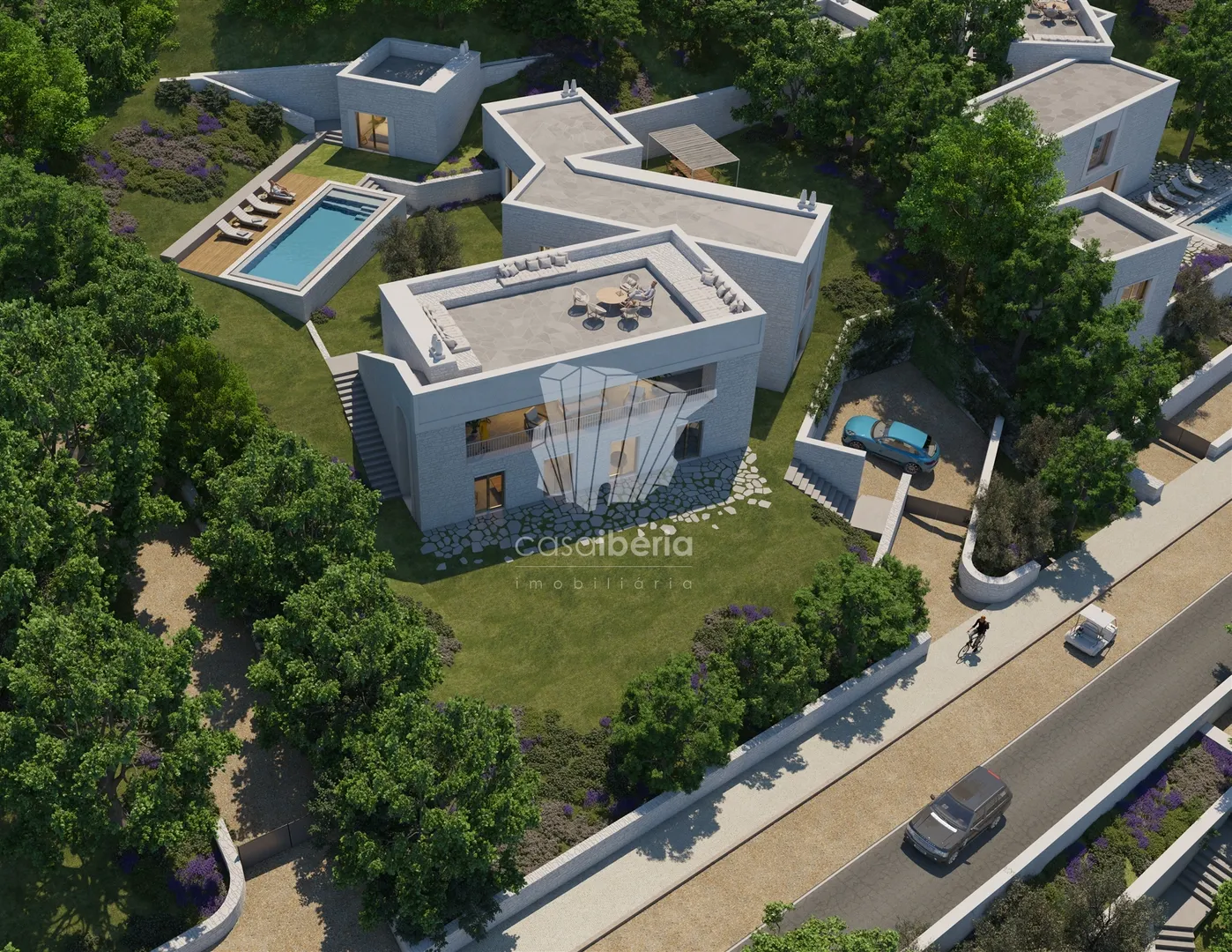 The villas available are completely independent on large plots of 1,700 to 3,300 m2, with covered areas ranging from 420 to 630 m2 and types T3 to T6.