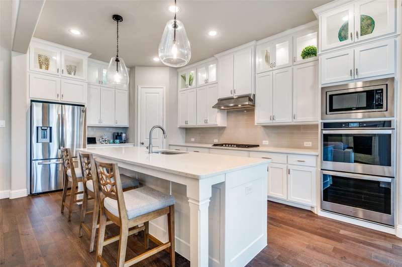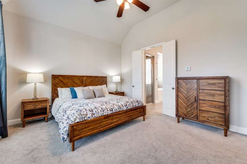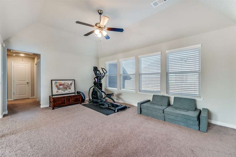 Located in Prospers premier Star Trail neighborhood, this beautifully designed home offers spacious living, high-end upgrades, and resort-style amenities, all within top-rated Prosper ISD. Inside, youll find soaring ceilings, an open-concept layout, and abundant natural light throughout This home has it all, study with glass doors for privacy, 2nd bedroom downstairs with ensuite. The chefs kitchen is designed for entertaining, featuring stainless steel appliances, quartz countertops, double oven, gas cooktop, large island with lit upper cabinets . The kitchen opens to a spacious family room with a tile fireplace. The primary suite is a private retreat with a wall of windows. The extended spa-like primary bath features a soaking tub, storage cabinets, double sinks walk-in shower. The primary closet is Texas sized with plenty of storage. The entertainment spaces abound with a media room, large game room or flex room. Plenty of room to store a Golf cart in this 3 car garage. Enjoy the resort-style amenities of Star Trail, including pools, tennis-pickleball courts, parks, walking trails.