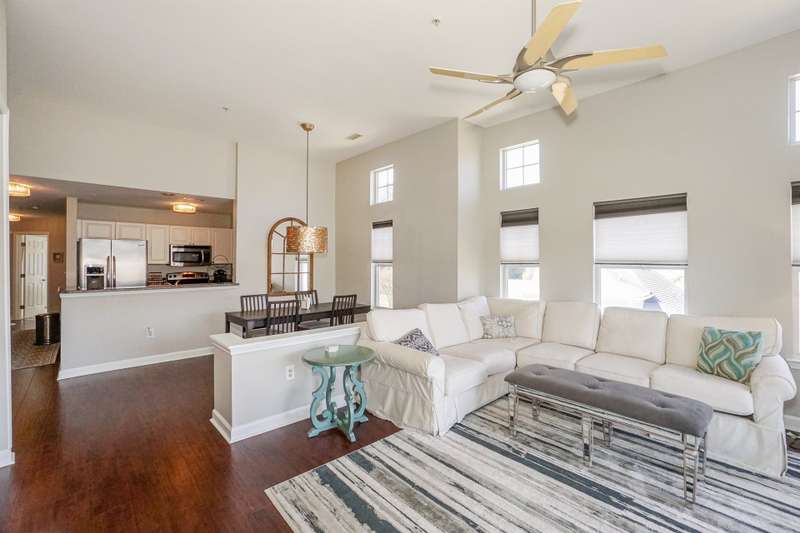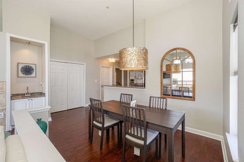 Optimally positioned within the community, this desirable end-unit penthouse offers breathtaking open water views and a serene, secluded atmosphere. This home features 3 bedrooms and 2.5 bathrooms (2 of which are ensuite) and 1337 sq ft. Inside, you will find an abundance of natural light pouring through large windows, which enhances the expansive water views and complements the soaring ceilings and open-concept living space. The master suite is a true highlight, with private waterfront balcony access, a spa-like bathroom featuring heated travertine tile floors, an extra-wide soaking tub, a walk-in shower, and an oversized walk-in closet. Neighborhood amenities, including a kayak launch, expansive lakeside lawn, boat tie-up, and community pool, elevate the lifestyle experience. With the recent price adjustment, this exceptional property is now even more accessible, offering tremendous value for a prime waterfront residence.