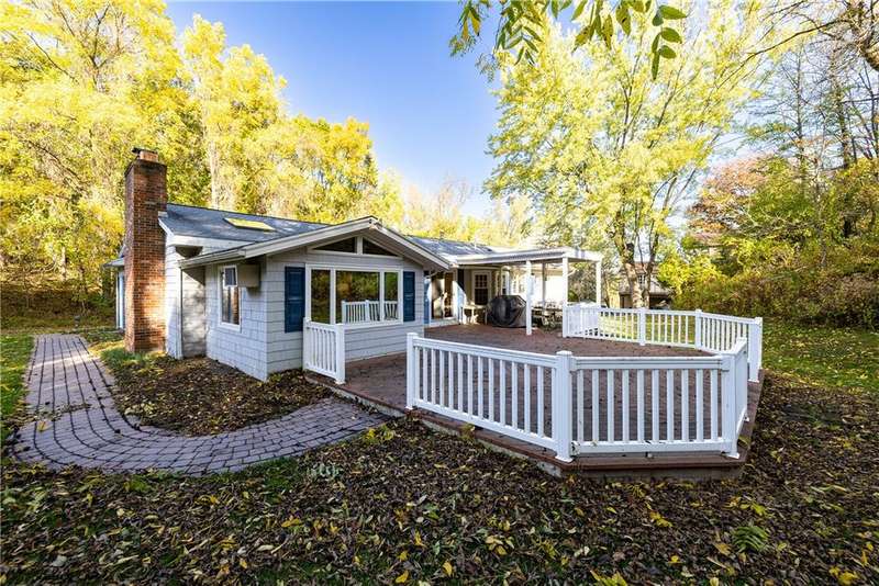RANCH located in desirable HICKORY RIDGE Subdivision! FAIRPORT SCHOOLS! 2 bedroom/2.5 bath on nearly 1/2 acre! Eat-in kitchen with slider to deck & formal dining room! Family room has gas fireplace with brick surround and a skylight! Living room has slider to deck and overlooks wooded lot! Primary suite with completely redone walk-in closet & full bath with dual vanity! Second full bath redone in 2022, EVERYTHING new! Second Bedroom with generous closet space! Partially finished basement has ample storage, newer LED lights, on-demand tankless hot water heater, & energy efficient block windows! Semi-private backyard with expansive deck & pergola! Just a couple of minutes away from Perinton Wegmans, Perinton Square and Perinton Hills malls! Newly updated electrical service & all new outlets and switches throughout. Newer roof. HOA of $250/quarter covers community pool and plowing of private drive. Pool table conveys with sale. Offers due Tuesday October 28th at noon. PUBLIC Open house Saturday October 25th 12:00-2:00 PM.