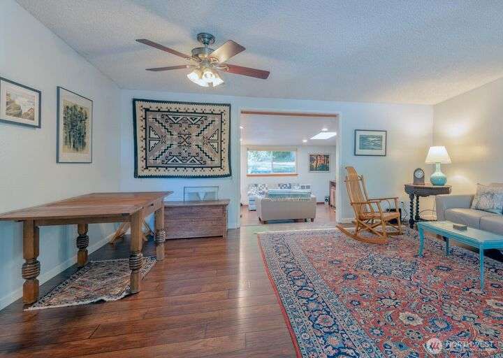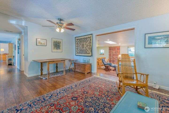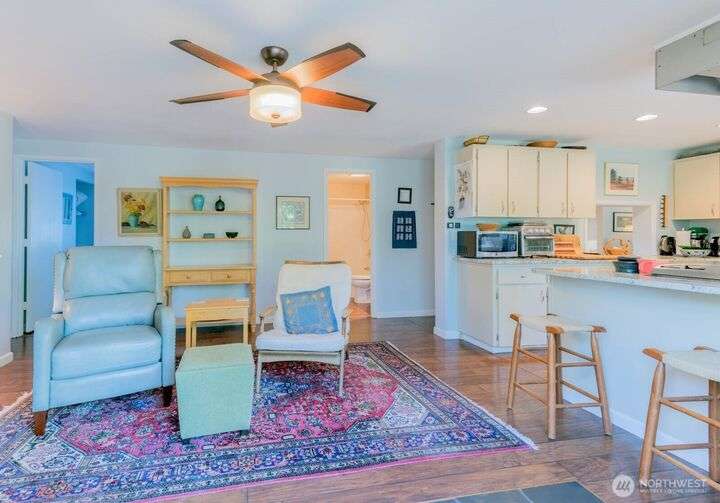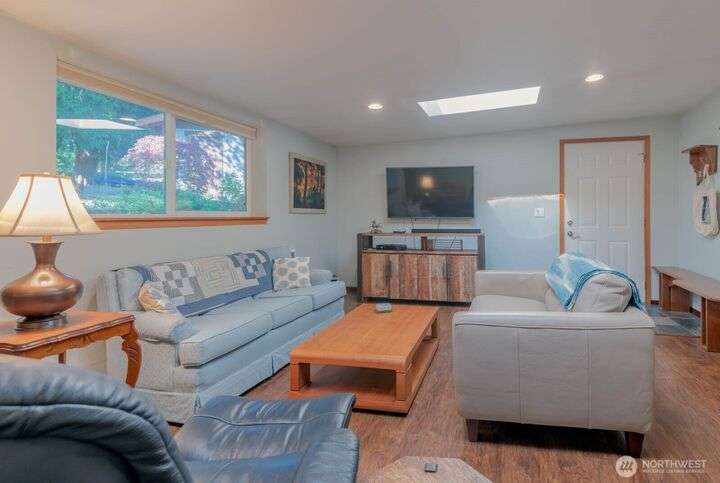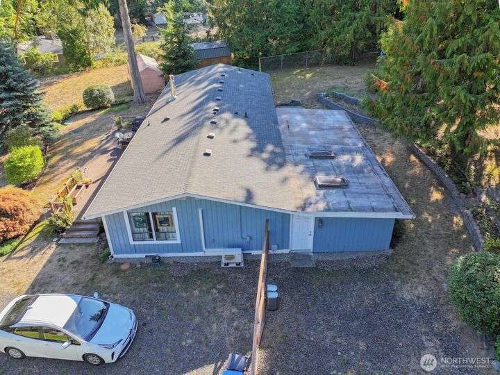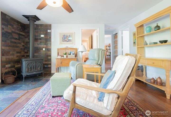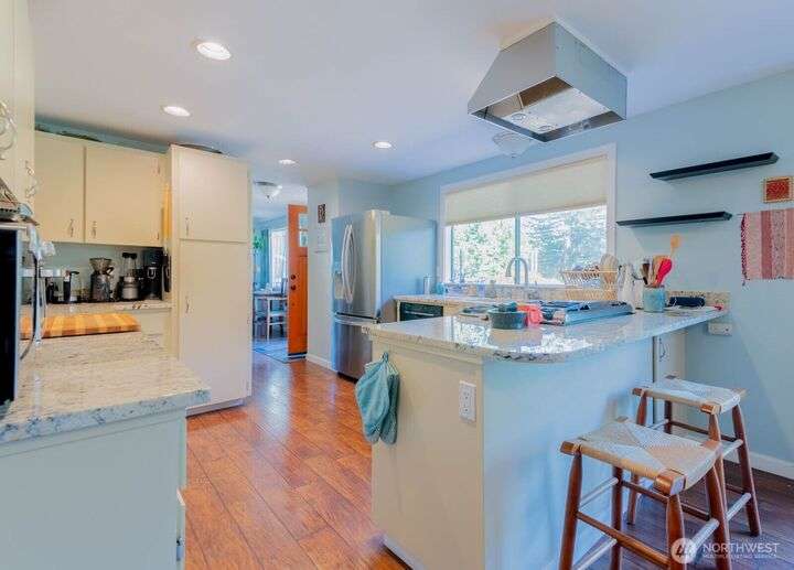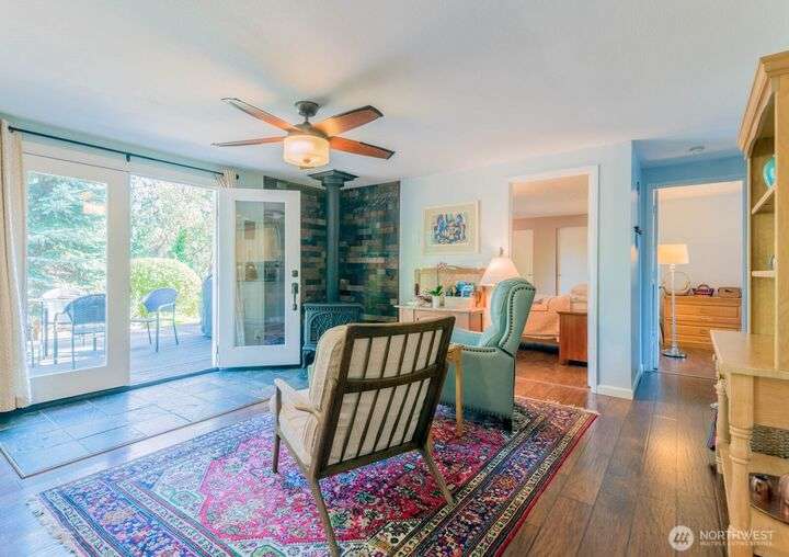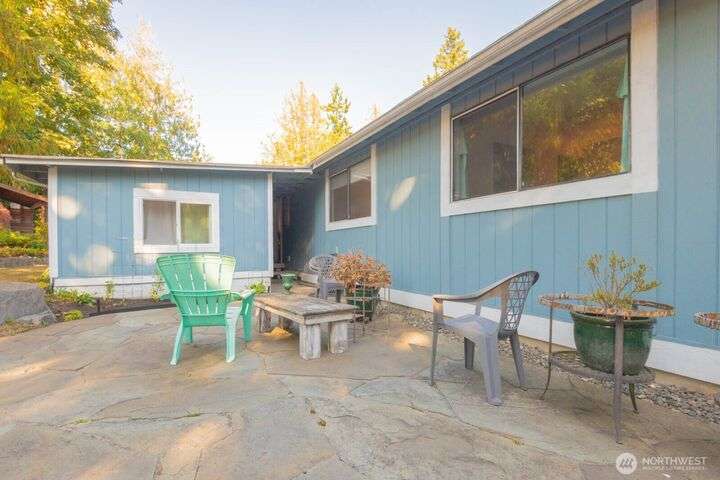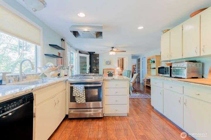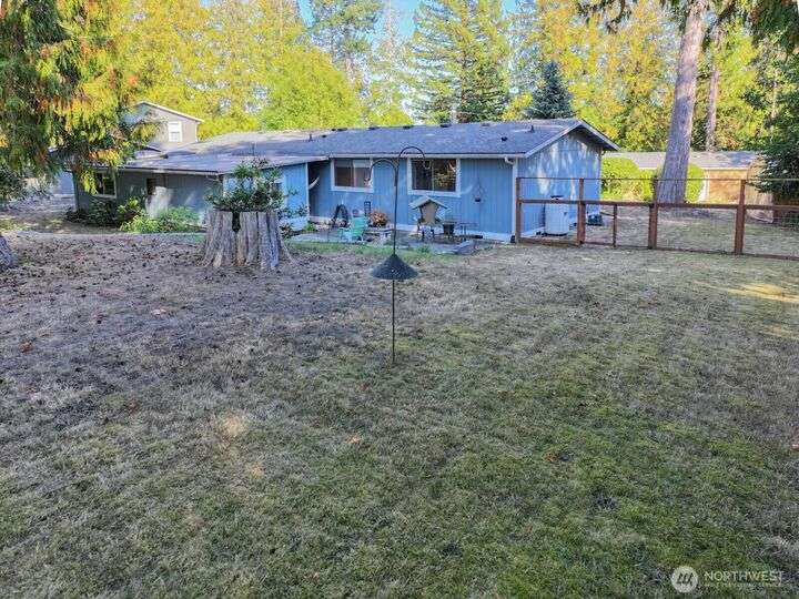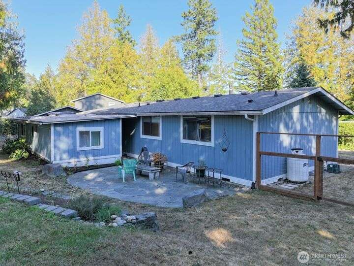 Fantastic 3 bdrm 1927 sqft Rambler on a half-acre in a very convenient location, right between the Kingston and Bainbridge Island Ferries. This home features a large living room, dining room, great room and a spacious kitchen w/granite countertops, new fridge/freezer, gas range, lots of cabinets. Washer & dryer stay. Three bedrooms, full bath and a 3/4 bath. With a couple steps down, you enter another large living room/bonus room with a separate entrance from the garden for guests and another finished room. This amazing floor plan has a cozy propane stove, mini-split heat pump that offers heat and AC plus electric heaters throughout. Half acre partially fenced yard with irrigation to 4 garden areas, large deck and patio.