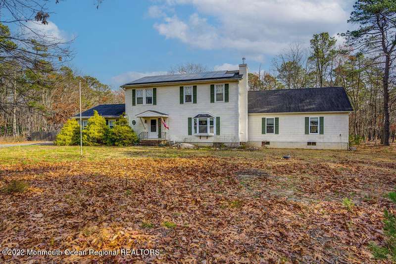 Rare opportunity to own 2 homes situated on 2 separate lots, totally 5 acres! The front home is a classic Colonial with 4 Bdrms, 3 1/2 bths. large kitchen, huge great room, full basement. Solar panels are owned and new gas lines at the street. 2nd home is tucked behind woods with its own long private driveway. Lovely, oversized Cape with 4 bdrms,2 1/2 bths. open concept kitchen, dining and family room. First level and full basement have 9 FT ceilings Outside has a beautiful in-ground pool with waterfall. There is also, a small barn and paddocks for horses. Gas lines have already been brought down to this house and is ready for hook-up.