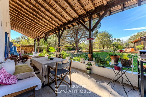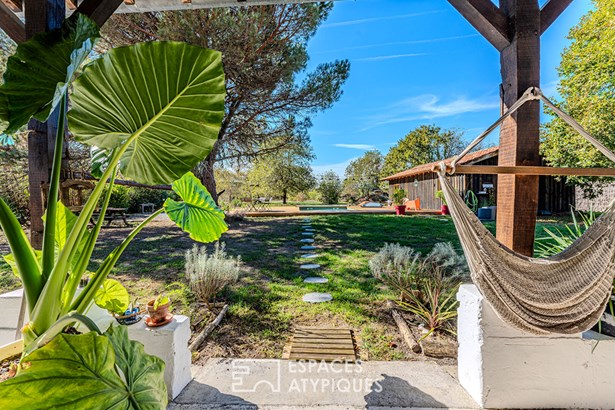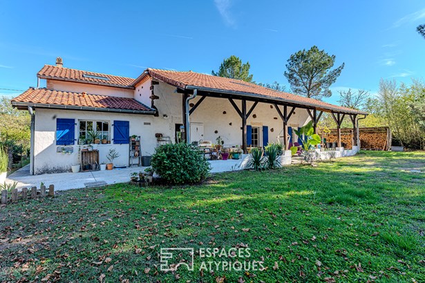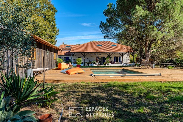 In the heart of the peaceful village of Pissos, in a preserved natural setting typical of the Landes region, this 245 sqm old house has been completely renovated with a warm and authentic feel.