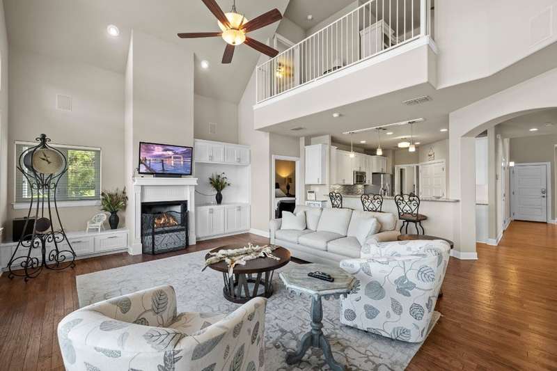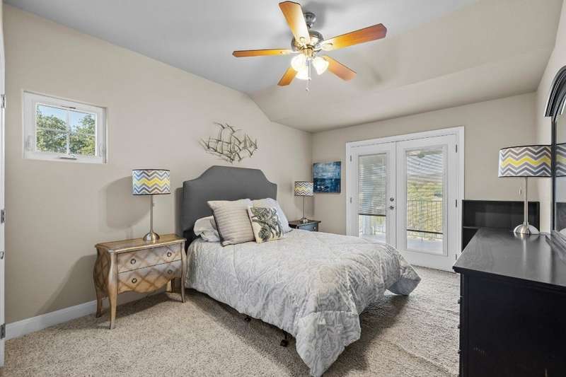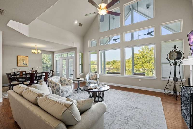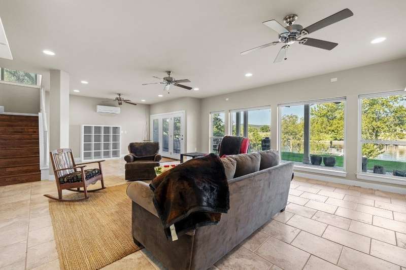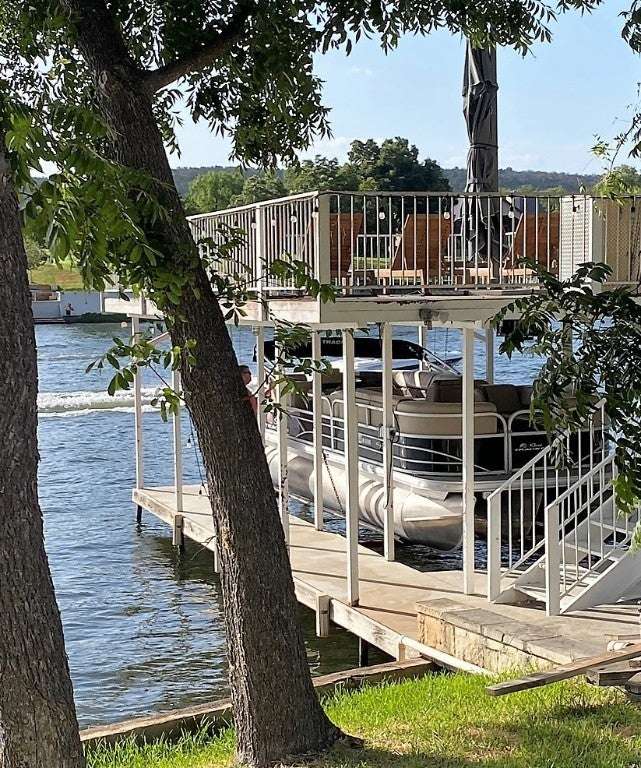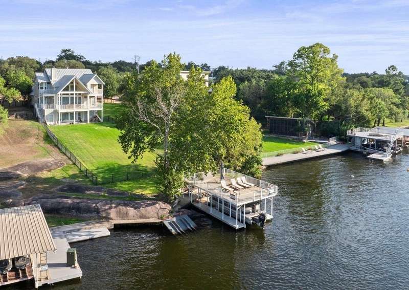 RELAX AND ENJOY the serene charm of lakefront living! Extraordinary LBJ lake home nestled along the Colorado arm of Lake LBJ. Experience the tranquility of 100' of waterfront property, incredible views of the lake, and the wonder of the Hill Country with a private Boat Dock, two jet ski lifts, and the allure of lake life. Enter the amazing breathtaking home that boasts 4,776 square feet of luxury and custom design creating an incredible flow with a bright and open floor plan. Enter on the 2nd level with the custom kitchen that opens to the spacious living area with cathedral ceilings, a wall of windows, and a balcony with a stunning view of the Hill Country and the Lake. The primary bedroom, bath, and second bedroom and bath are also located on the main level. The kitchen includes granite counters, an eat-at bar with pass-through, custom white cabinets, a large pantry, an oversized utility room, and stainless appliances. Multiple rooms have private balconies and a covered patio on the lower level. Enjoy boating, jet skiing, and tubing the beautiful LBJ Lake. All furnishings and household items will convey along with the washer, dryer, and refrigerator.
