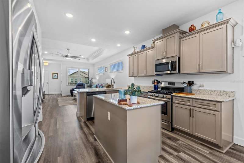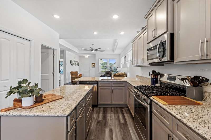 This Hamilton model in CountryWay isn’t your average home and it's definitely not your average lot. With over $25,000 in upgrades and high end features, you will feel a step above the rest. No need to wait for your house to be built, this one is ready to go. It even sits on a premium lot valued at $30,000. As you walk in, you will immediately be drawn to the tray ceiling and statement fan that elevates the house entirely. The space flows perfectly from living to kitchen, while still having plenty of separation between rooms. The tray ceiling carries into the primary suite, where you’ll also find a walk-in closet, double vanities, and a beautifully tiled shower with a built-in bench. Designed with long-term comfort and mobility in mind, this home features easy access entry. Extras include a tankless water heater, a full home water filtration system, gas stove, and front yard maintenance handled by the HOA, so you get more time to enjoy where you live. Outside your front door, Country Way Town Center offers more than just charm-it delivers convenience and community. Stroll or bike to local favorites like the gym, clothing boutique, restaurants, and even the beloved beef store. With peaceful streets, friendly neighbors, and everything you need close by, why would you want to live anywhere else?