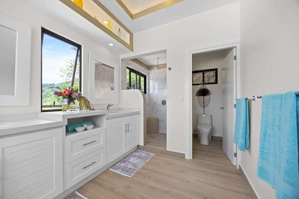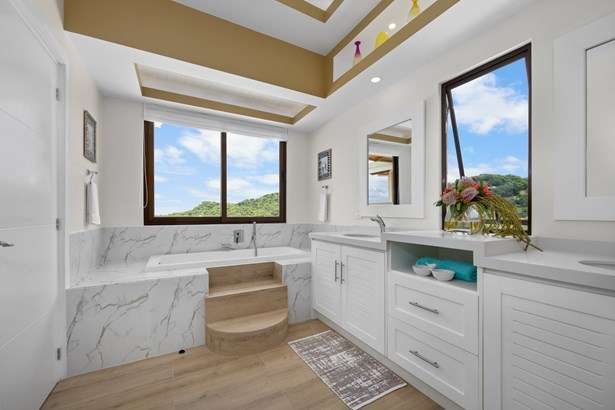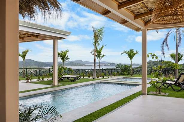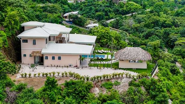 Casa Camari is a true one-of-a-kind luxury home in the exclusive La Marcela community, in Potrero. Spanning over 8,100 square feet on a 5,000 m² lot, it offers six bedrooms, six full bathrooms and two half bathrooms, all with breathtaking ocean and mountain views. This four-story residence offers sweeping ocean and mountain views, along with meticulously crafted details that set it apart from any other property. What makes Casa Camari truly special is the heart and soul and dedication of its owners, who spent months personally overseeing the design and finishing touches—especially the personalized hand-painted, themed walls that bring a unique charm and character to every room.As you enter through the gate, discover a private haven for your caretaker, complete with an en suite bathroom and kitchenette. Ascend to the second floor to a stunning oversized one bedroom guest apartment, designed for privacy and comfort. Boasting its own laundry room, a grand bathroom with a walk-in closet, a spacious living room and kitchen, and its own terrace, this apartment offers breathtaking ocean and mountain views that will captivate your senses.Moving up to the main living area, it boasts large windows, high ceilings, and an open-concept design, creating an airy and inviting space. The kitchen is a chef's dream, with top-tier appliances, custom cabinetry, and stunning countertops. Whether cooking for family or hosting guests, the large island and dining area provide plenty of space to enjoy meals with a view.The home features four master suites, each inspired by Côte Sur French magazine, with its own unique ambiance and luxurious finishes. One suite radiates a calm, coastal vibe with soft blue and white tones, while another embraces a tropical elegance with delicate palm leaf patterns hand-painted on the walls and ceiling. A third suite features a striking black and white tribal-African inspired theme, while the fourth boasts a fresh, tropical ambiance with soothing lime-green accents and bamboo paneling.The outdoor spaces are equally impressive, with landscaped gardens, multiple terraces, a swimming pool and jacuzzi overlooking the ocean, and a ranch-style pavilion with tiki huts and a barbecue area. The pavilion is the perfect spot for outdoor dining and entertaining, while the terraces offer stunning views of the surrounding landscape. There is also an outdoor shower with a hand-painted heron that overlooks palm trees out to the sea.Casa Camari embodies convenience and luxury, boasting a functional layout and amenities that cater to every need. Effortless access to all four floors is ensured with both stairs and an elevator, while ample parking for up to six vehicles in a gated and covered area provides added convenience.Fully air-conditioned, Casa Camari offers peace of mind and year-round comfort. Secluded amidst lush tropical vegetation, the home provides privacy and tranquility, while its proximity to multiple beaches and popular tourist destinations ensures easy access to the area's many attractions. Casa Camari is the epitome of effortless living and exclusivity, promising an unforgettable experience. It is the perfect place to relax, entertain, and enjoy the beauty of Costa Rica.La Marcela is an exclusive gated community that feels like a warm embrace. Nestled amidst tranquil landscapes and just a stone's throw from the vibrant shores of Playa Potrero, this heaven beckons you to experience the best of both worlds. Just an hour's drive from the Liberia International Airport, it ensures effortless connectivity. Imagine waking up to the sound of birds chirping and the gentle breeze rustling through the trees, and incredible ocean and majestic mountain views, knowing that all the conveniences of modern life are just a short drive away.Whether you're seeking a vacation paradise or a permanent home, La Marcela seamlessly merges tranquility with convenience, promising an unparalleled life experience. This community is close to medical, private schools, grocery stores, and many restaurants. Come, discover the paradise that awaits you in Casa Camari, where nature's embrace and modern amenities harmoniously coexist. Reach out today for a private viewing of this incredible masterpiece!