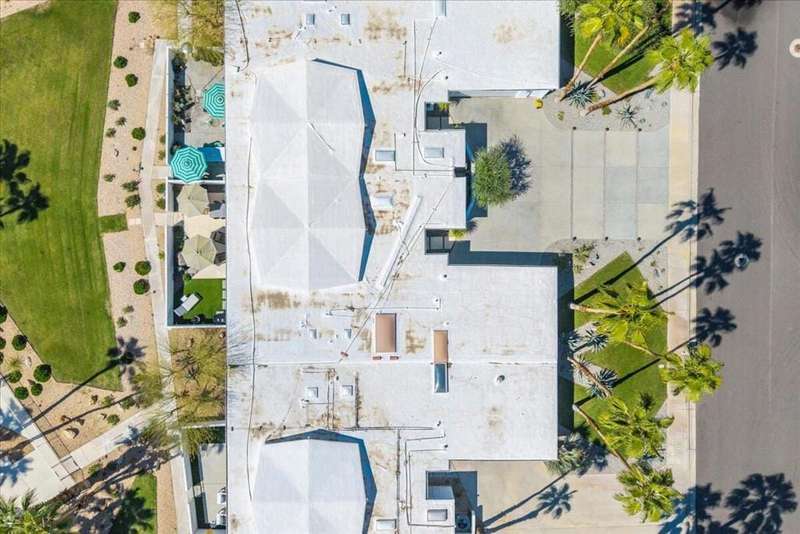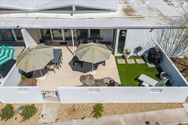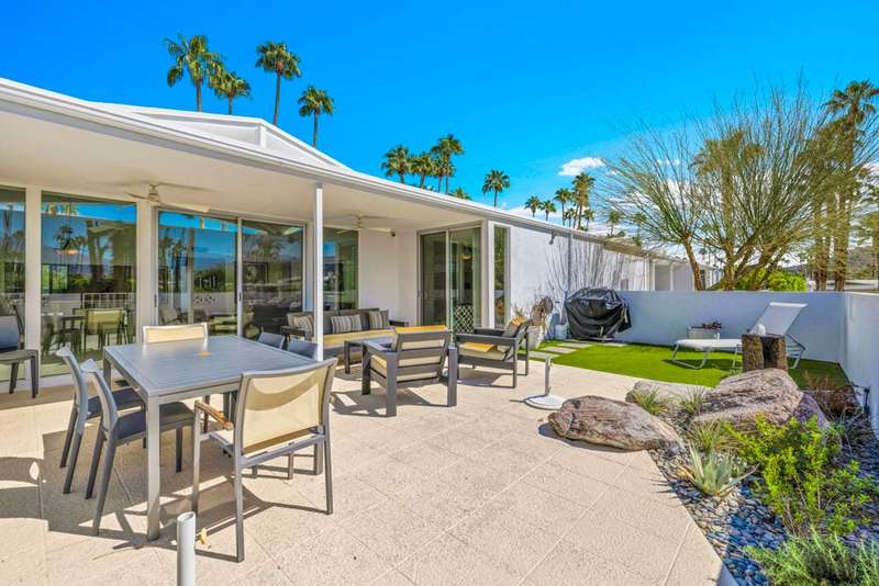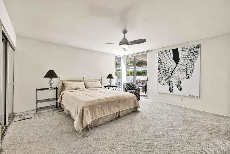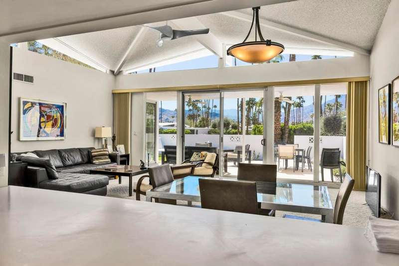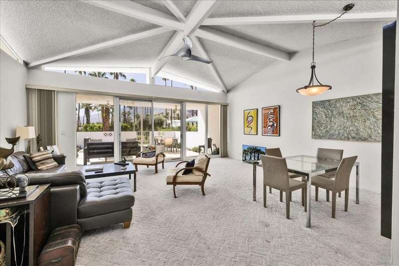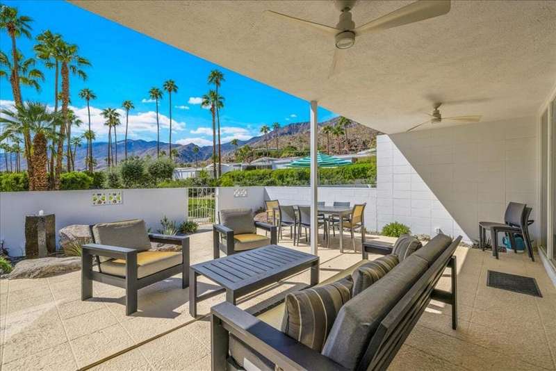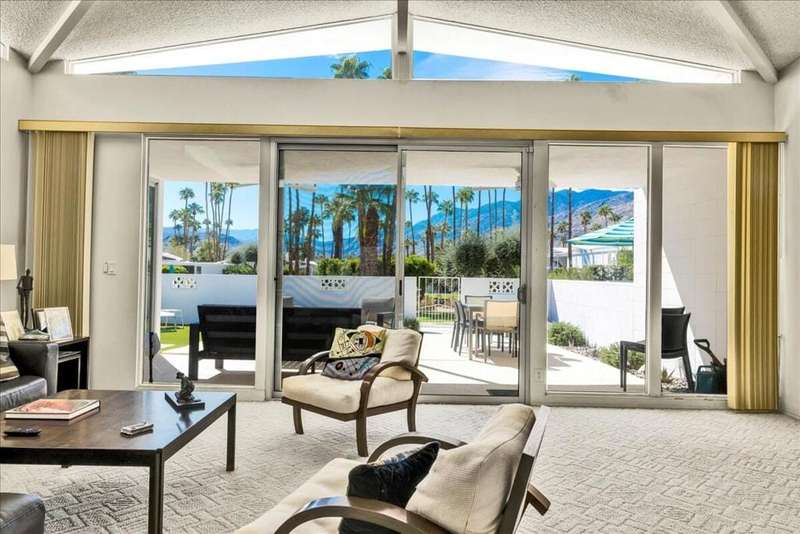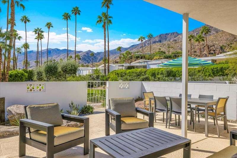 An exceptionally well located 3 + 2 architectural masterpiece offers commanding southern oriented mountain VIEWS. This 1700 + square foot unit is a ''Fixer-upper'' and will appeal to a preservationist / restorationist looking to return the unit to architects' Palmer & Krisel's original vision. An over-sized beautifully landscaped terrace with fountain is the added value on this potential showplace. A 1980's style kitchen and original 1960's bathrooms together with an enclosed double carport and enclosed second bedroom atrium will require attention. Upgrades not covered in needed cosmetics are double pane doors and windows including clerestories an approximately six year old HVAC and a new sewer line connects the house to city services. A new driveway and curated landscaping sets the stage upon arrival. .