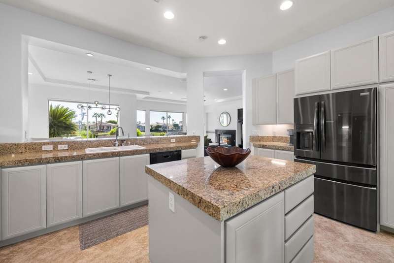Available for Jan and Feb 2026. This Gorgeous 3-bedroom, 3-bath seasonal lease in La Quinta Fairways offers a private pool on the renowned Pete Dye designed Dunes Course. With its east-facing orientation and breathtaking mountain and lake views, this home features a bright and airy layout, a spacious great room, a dining area, a gourmet kitchen, and three bedrooms. Additional amenities include a two-car garage a charming courtyard entrance and a casita-style bedroom suite. In the backyard, you'll find a custom pool, a spa, a built-in barbecue, and endless views. La Quinta Fairways is South of HWY 111, conveniently located near Old Town, with access to fine dining, shopping, and world-class golf. 60 days is preferred, 'Any lease of this Lot must be for at least thirty (30) consecutive days, 30 day minimum required.'