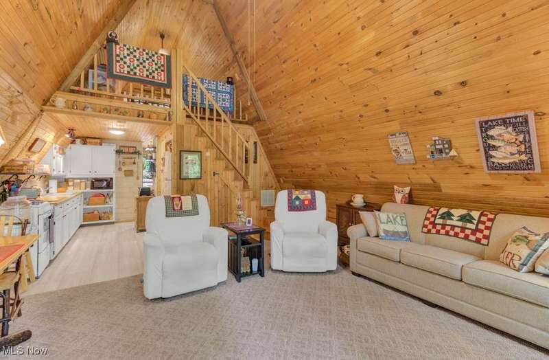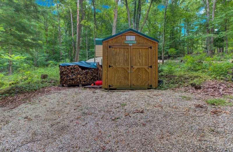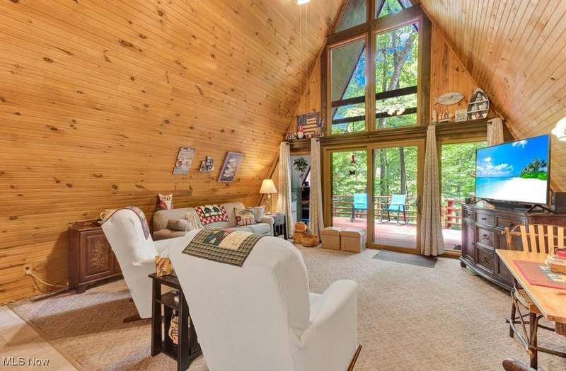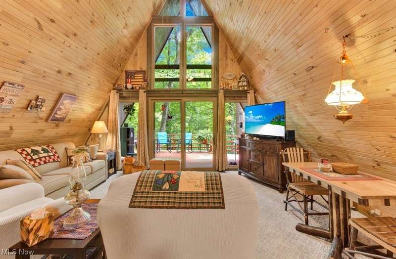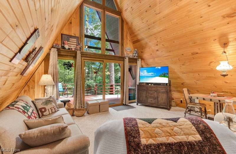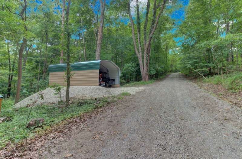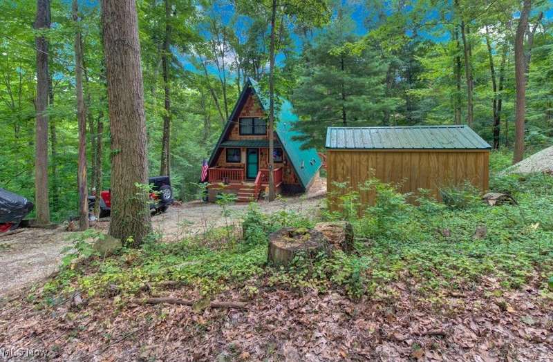 Adorable, Charming and Cozy A-Frame at Leesville Lake! Be the next owner of this cabin in the woods on 1.06 acre of private owned land! No lease fees! Leave your worries behind and relax! Nestled in a pretty wooded setting with seasonal lake views. Partially furnished and ready for you to bring your own personal touches! Enjoy some of the best Muskie fishing around on 1000 acres of this beautiful lake! New Metal Roof, Gutters with leaf guard in 2019. New Pex plumbing in 2019. Newer shaker shingles on the front of the house, all newer windows in the cabin, newer LVT flooring in kitchen and bath, and newer canopy garage to protect your lake toys from the weather! Walk out basement would be very easy to finish for additional living space if needed. Very efficient to own. Forced air heat along with free standing wood burner plumbed into duct work with central air. Enjoy year round get-aways! Electric bills run from $55 in the winter to $115-145 in the summer. Sunmar Centrex 2000 Central/External Composting Septic. Frontier DSL Internet. 7 wooded parcels. Large 14x20 wood deck offers seasonal lake views. Pontoon boat included with acceptable offer!