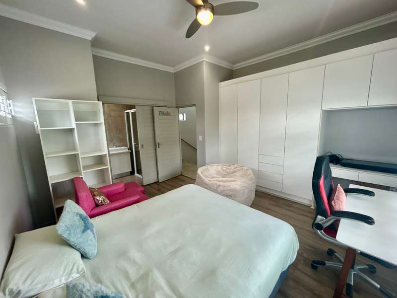 Effortless Living with Solar Power and Style in Midstream Ridge Step into modern elegance with this beautifully crafted 4-bedroom home, perfectly positioned on a prime corner stand in sought-after Midstream Ridge Estate. Designed for effortless living, it combines sustainability, spacious design, and stylish finishes to create a home that caters to both comfort and class. ? Property Features: - 4 Bedrooms | 3.5 Bathrooms | 2 Garages - Open-plan living areas filled with natural light - Study nook—ideal for remote work or student focus - Enclosed patio with gas braai & fireplace—perfect for year-round entertaining - Shatter blinds, air conditioning, and a solar & battery backup system for peace of mind. ? Outdoor Bliss: A sparkling pool set in a lush, landscaped garden Ample space for family fun and relaxed outdoor living ?? Additional Perks: Staff accommodation for added convenience Functional scullery and spacious double garage Located within a secure, family-friendly estate ? Transfer Costs: Transfer Duty ? Estate: Midstream Ridge ? Living Areas: 2 | Study: Yes | Pool: Yes | Patio: Enclosed This isn’t just a home—it’s a lifestyle. Live smarter, greener, and more beautifully in Midstream Ridge. ? Contact Carla Today to arrange your private viewing.