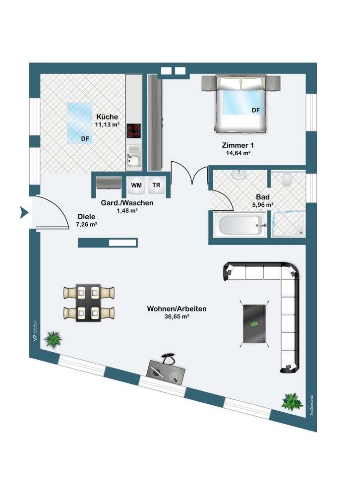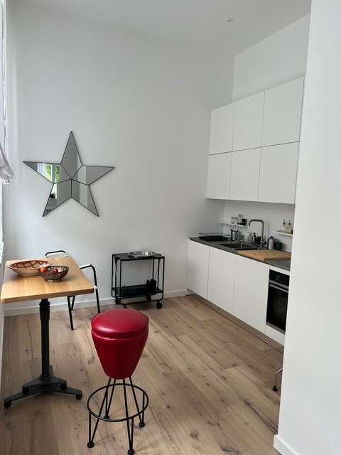 An exclusive top-class loft studio apartment with high-quality fittings and partial furnishings is available to let. The historic building dates back to 1919 and has recently undergone extensive refurbishment, leaving it in mint condition. The living space of the loft-studio-apartment is a generous 80 m² and thus offers sufficient space for your needs. The property contains two rooms. The exclusive living room and study can also be used as a dining area. The bedroom is furnished with high-quality materials and a box-spring bed. The upscale quality of the loft studio guarantees a luxurious living experience. High-quality materials and a modern design create an appealing atmosphere. Large windows ensure a bright and light-flooded living atmosphere and also offer a wonderful view of the surroundings and, above all, the water. The modern fitted kitchen is equipped with all the necessary electrical appliances and offers plenty of storage space for your kitchen utensils. The chic bathroom has a floor-level shower and elegant sanitary facilities. A high-quality parquet floor lends the rooms warmth and comfort. The loft studio apartment is in a quiet yet central location. The surrounding infrastructure offers excellent public transport connections as well as easy access to shops, restaurants and other everyday amenities. The surrounding area offers numerous leisure opportunities, such as parks and green spaces that invite you to relax and linger. Cultural facilities and event venues are also located in the immediate vicinity. The good transport connections are a great advantage for commuters. You can reach the nearest train station within a few minutes, from where you can easily travel to the surrounding cities. The highway can also be reached quickly, so that drivers also have the best conditions. See the benefits of this exceptional loft studio for yourself and arrange a personal viewing today. We will be happy to show you the property and answer any questions you may have. Let yourself be inspired by this unique property. Please note the rental period of 3 years with an option to extend.