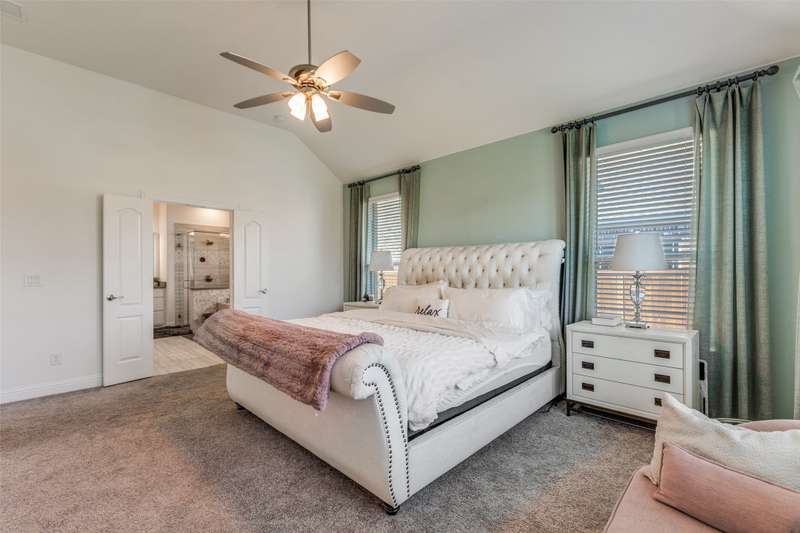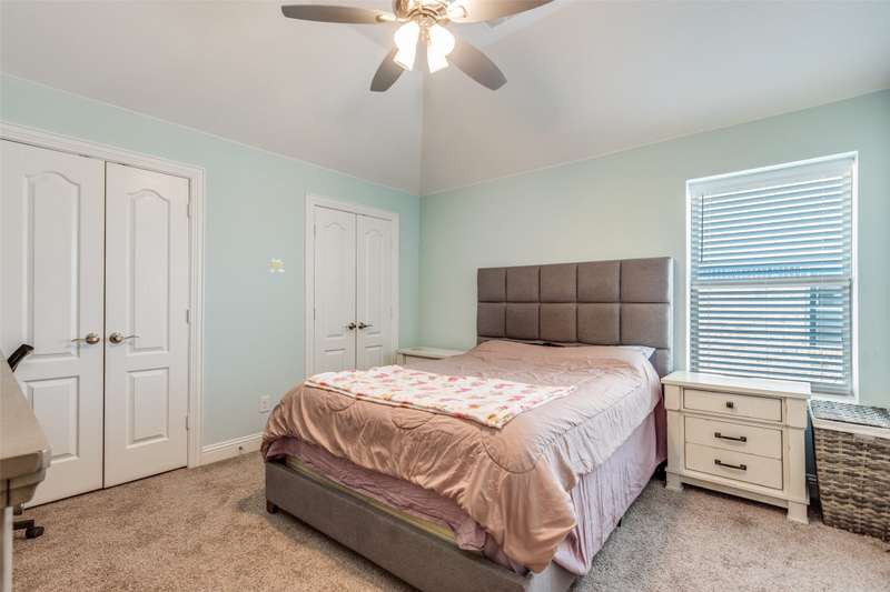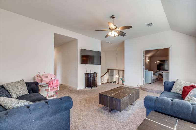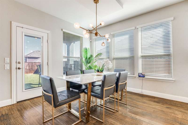 Stunning former Bloomfield Model Home located in the heart of Frisco! This south-facing beauty offers a perfect blend of style, comfort, and functionality. From the charming front porch to the thoughtfully designed interior, every detail has been crafted with care. Step inside to find elegant hardwood floors flowing throughout most of the first floor. A welcoming formal dining room sits just off the entry ideal for hosting gatherings while a spacious office on the opposite side provides plenty of room for work and additional furnishings. The chefs kitchen features a gas cooktop, granite countertops, and a convenient coffee bar area near the walk-in pantry. A casual dining nook adjoins the kitchen and overlooks the open-concept living room, which includes a cozy gas fireplace and views of the backyard. The primary suite on the main floor is expansive, complete with a sitting area, dual vanities, a large soaking tub, a separate shower, and a massive walk-in closet. Upstairs, youll find a second living area, a dedicated media room perfect for movie nights, and a private balcony with a touch of seclusion. The secondary bedrooms are generously sized, each with ceiling fans, and one includes its own en suite bath. Step outside to a spacious backyard featuring a covered patio, a childrens playhouse, and convenient side access to the garage. A functional mudroom connects the laundry area to the garage for added convenience. Dont miss your chance to own this exquisite south-facing former model home in one of Friscos most desirable communities schedule your private tour today!
