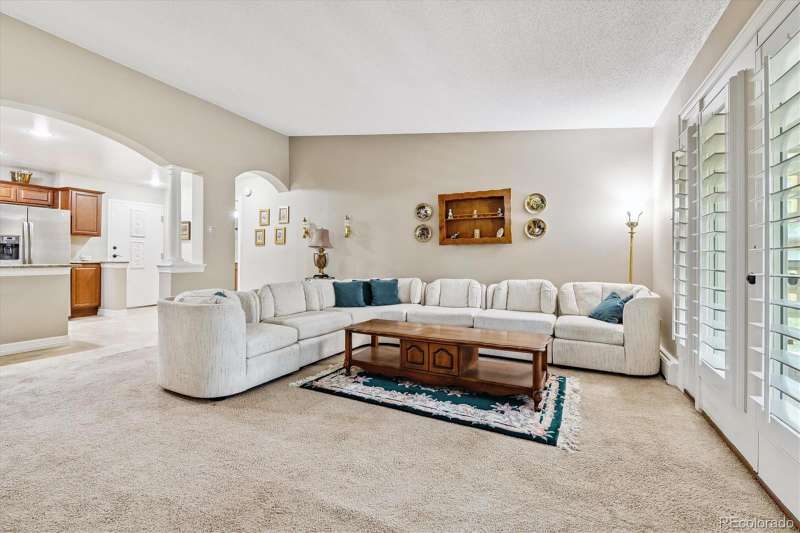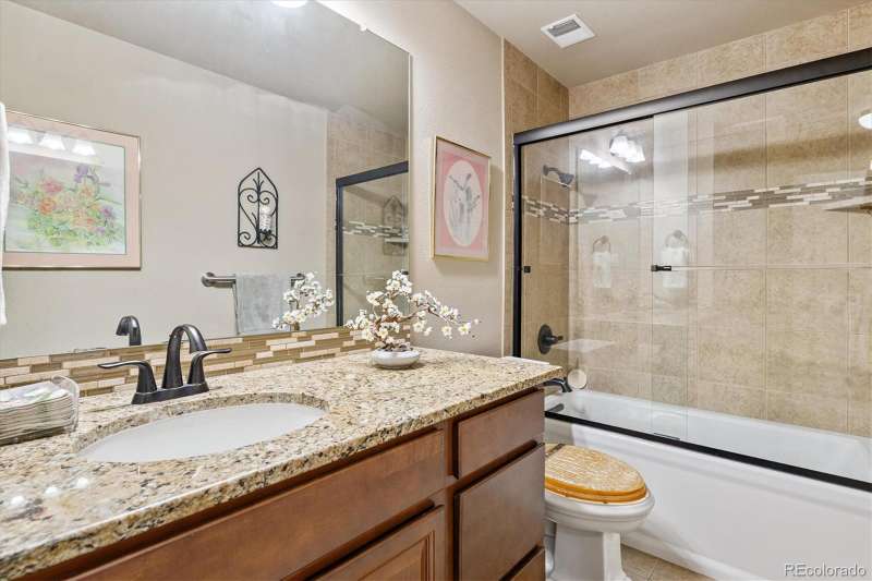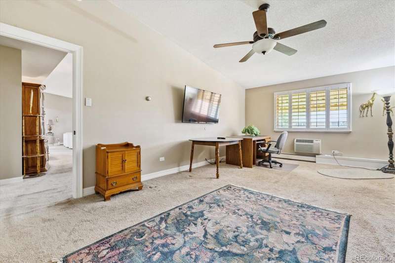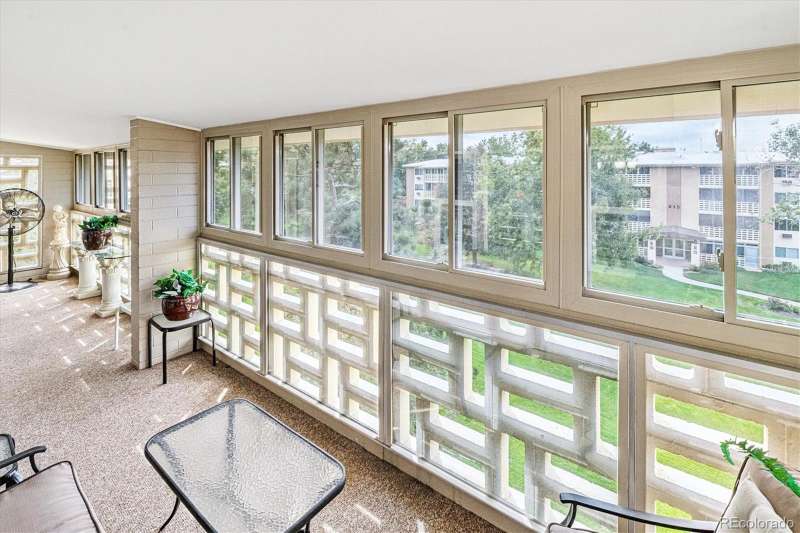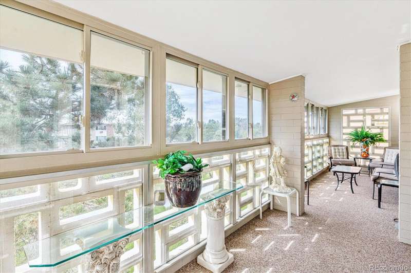 One of Windsor Gardens rare finds- you won't want to miss this one! Penthouse remodeled double primary unit overlooking large courtyard- one of few 1710 sf floorplans, featuring 2 oversized bedrooms w/en-suite bathrooms. Gorgeous remodel thru-out, reconfigured in several areas. Open kitchen w/wood cabinetry, granite slab counters, tile backsplash, stainless appliances, and breakfast bar seating. Both bathrooms remodeled w/newer vanities, granite tops, new fixtures, and tiled tub/shower surrounds and floors. What was the oversized dining room has been enclosed with glass french doors for bonus office/sitting area space. Double lanai with french doors, and vinyl glass/screen enclosure. Other features include interior window shutters on all windows/doors, 4 updates wall a/c units, neutral and updated paint/carpet/tile color scheme, and bonus double sized storage room on same floor as condo. 2 car detached garage included! **Windsor Gardens is Colorado's Largest Age 55+ Active Adult Living Condo Community. Did you know? Monthly HOA Dues include annual property taxes! And heat, water, sewer, trash, round-the-clock patrolling community responders, full time onsite association management, grounds/building maintenance, and activities department. Enjoy clubhouse amenities such as fitness center, indoor/outdoor pools, hot tub, sauna, billiards, library, craft rooms for ceramics, sewing, woodworking, and 9 hole par 3 golf course and onsite restaurant both open to the public. Stay engaged with a wide array of activities, clubs, and events scheduled every month. Additional features include garden plot program, private walking trail and nature preserve, and RV/Boat storage. The Highline Canal runs full length along south side of the complex. RTD Bus Stops located thru-out the community. FHA/VA approved. Close to restaurants, stores, shopping…Minutes to Lowry, Hwy 225, Cherry Creek…Easy access to DIA and downtown. Come see for yourself what Windsor Gardens has to offer. 2021**