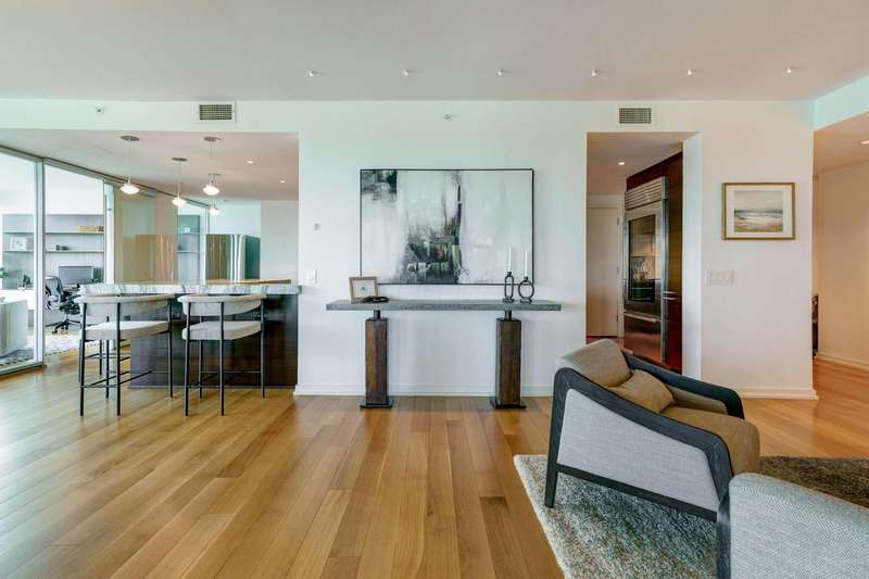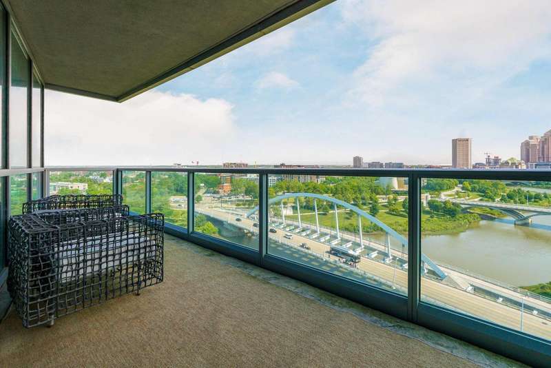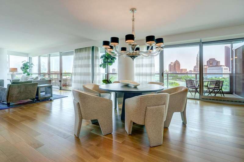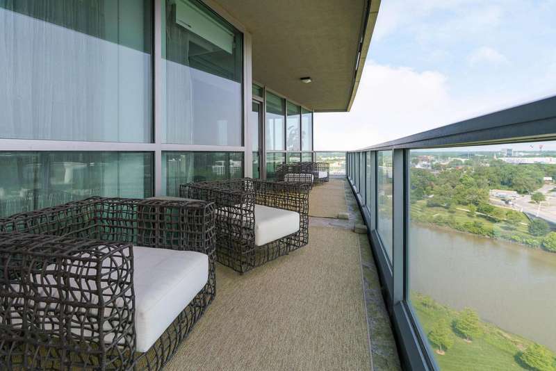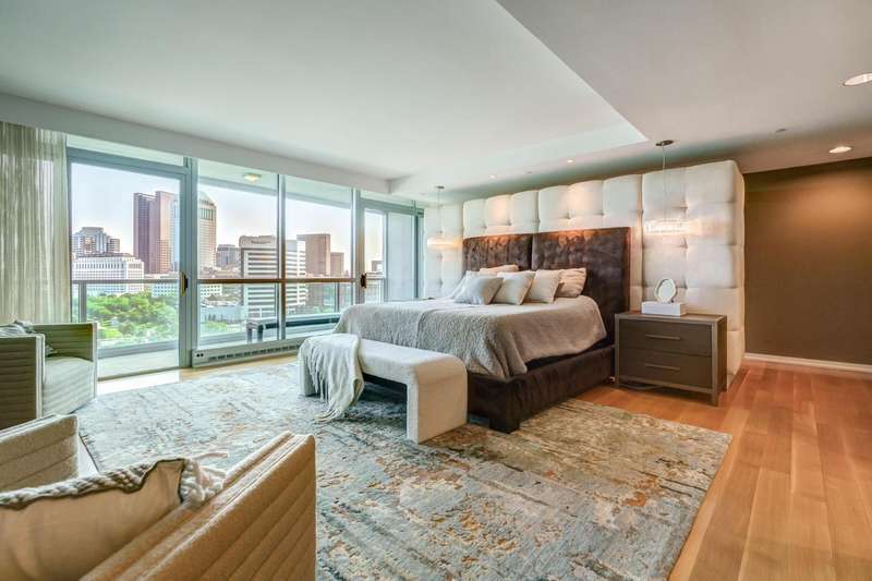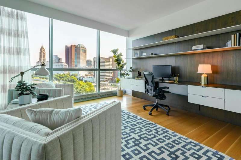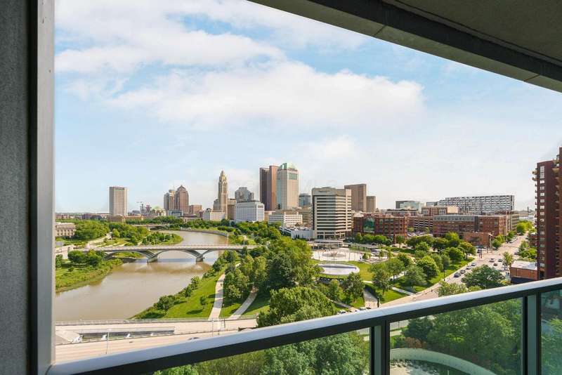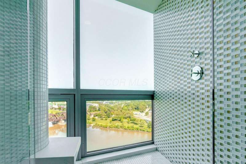 Meticulously renovated in 2014 with sophisticated, high-end finishes, this open-concept residence features rich real wood flooring, a striking stacked stone accent wall, pinpoint lighting, and custom window treatments throughout. The chef's kitchen is outfitted with premium Wolf and Sub-Zero appliances, quartz countertops, a wine cooler, breakfast bar, and an elegant butler's pantry with custom cabinetry and integrated refrigerator/freezer drawers. A spacious living area opens seamlessly to an expansive 45-foot balcony, ideal for entertaining or unwinding with a view. The primary suite offers a private 24-foot balcony, dual walk-in closets, and a custom-built closet partition wall for added functionality and design. Two garage parking spaces and private storage are included. Residents enjoy unparalleled amenities including 24/7 front desk concierge, a resort-style outdoor pool, state-of-the-art fitness center, media and social rooms, guest apartment, business and meeting spaces, two car wash bays, on-site management, and a secure dog runs, all set beside the newly revitalized downtown riverfront promenade. This is a rare opportunity to own a truly elevated urban lifestyle in one of Columbus's most prestigious addresses.