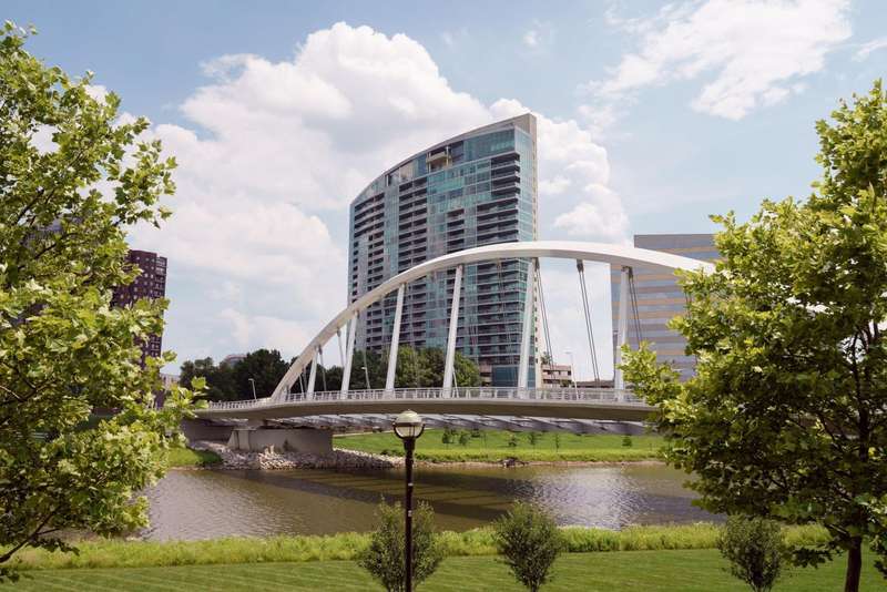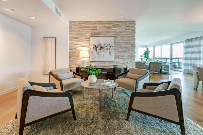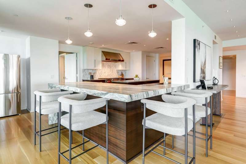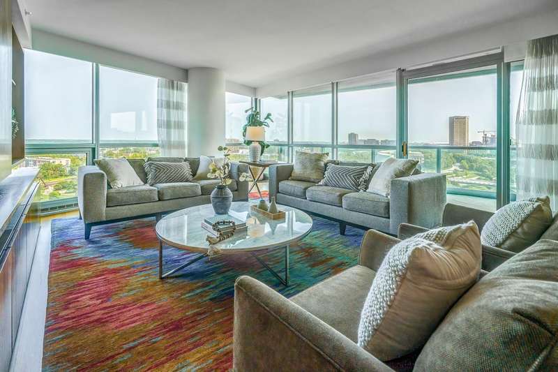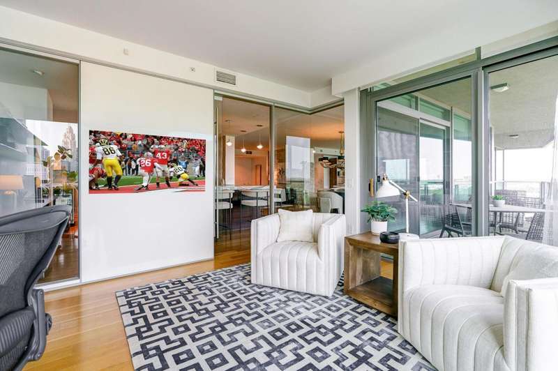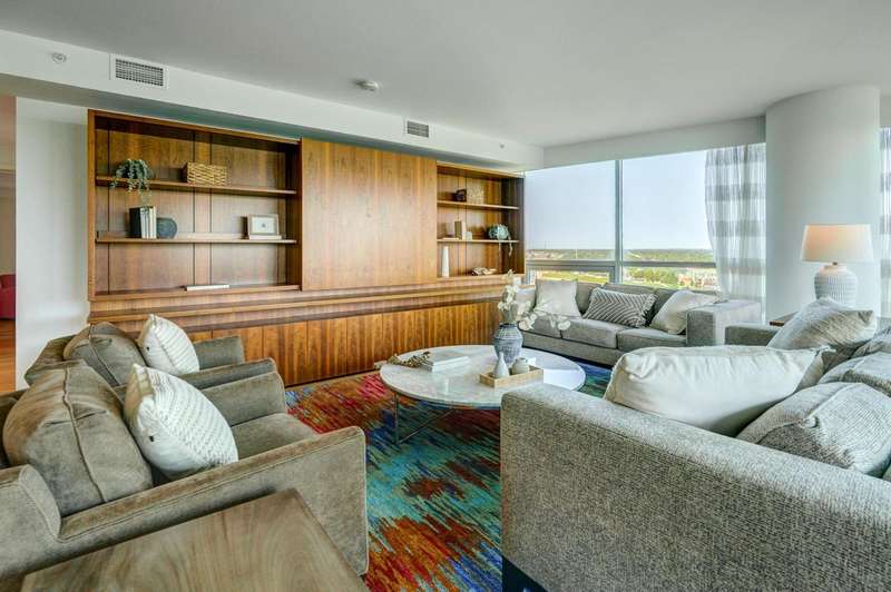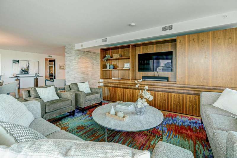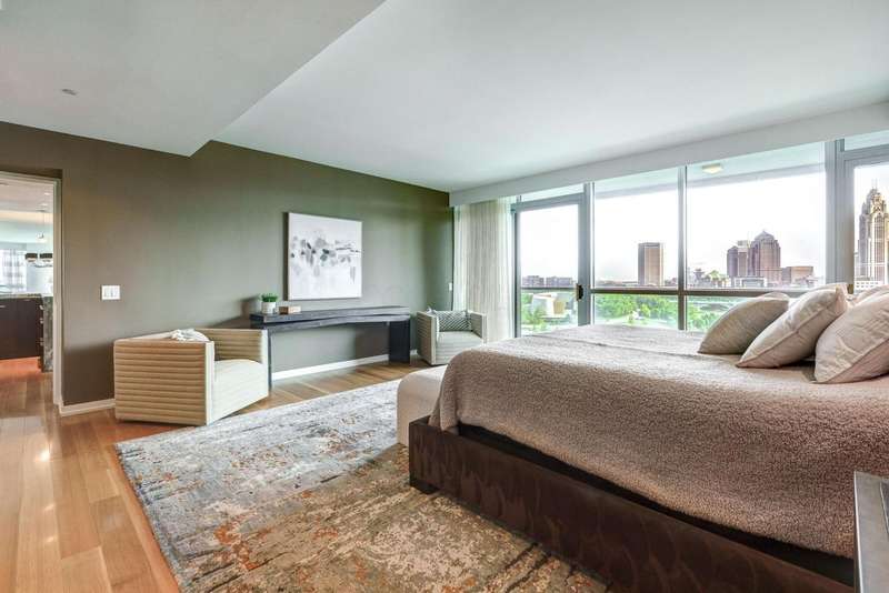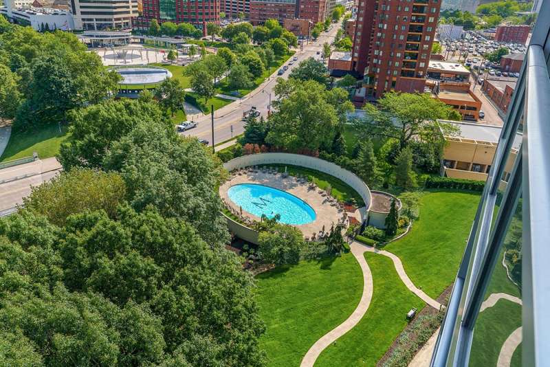 Meticulously renovated in 2014 with sophisticated, high-end finishes, this open-concept residence features rich real wood flooring, a striking stacked stone accent wall, pinpoint lighting, and custom window treatments throughout. The chef's kitchen is outfitted with premium Wolf and Sub-Zero appliances, quartz countertops, a wine cooler, breakfast bar, and an elegant butler's pantry with custom cabinetry and integrated refrigerator/freezer drawers. A spacious living area opens seamlessly to an expansive 45-foot balcony, ideal for entertaining or unwinding with a view. The primary suite offers a private 24-foot balcony, dual walk-in closets, and a custom-built closet partition wall for added functionality and design. Two garage parking spaces and private storage are included. Residents enjoy unparalleled amenities including 24/7 front desk concierge, a resort-style outdoor pool, state-of-the-art fitness center, media and social rooms, guest apartment, business and meeting spaces, two car wash bays, on-site management, and a secure dog runs, all set beside the newly revitalized downtown riverfront promenade. This is a rare opportunity to own a truly elevated urban lifestyle in one of Columbus's most prestigious addresses.
