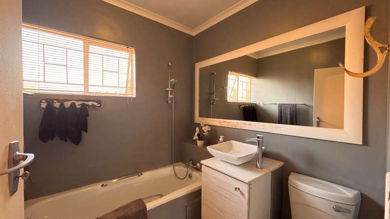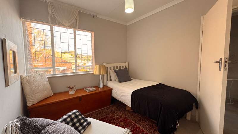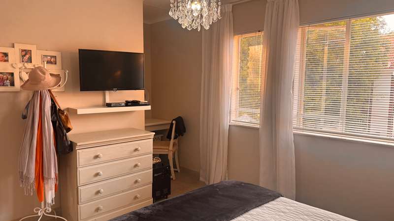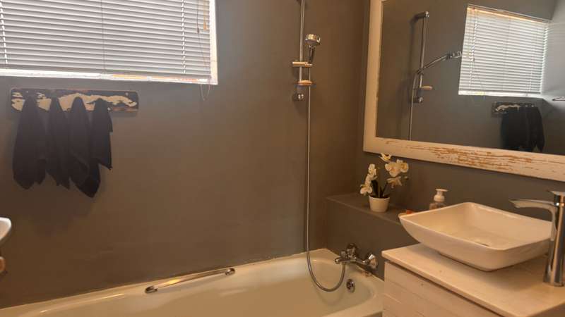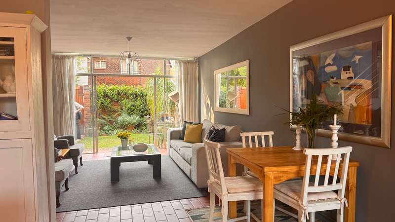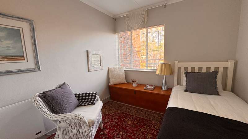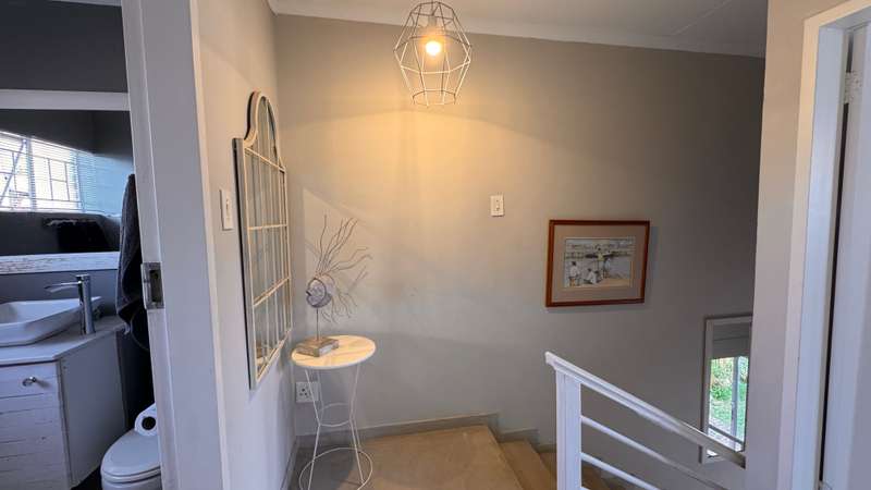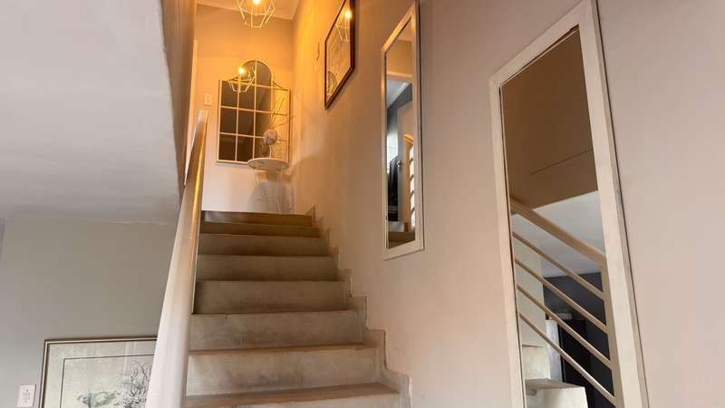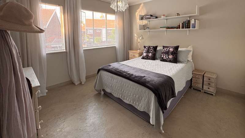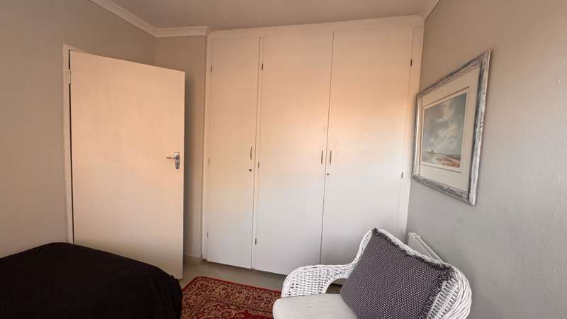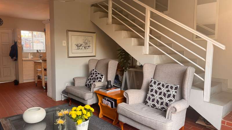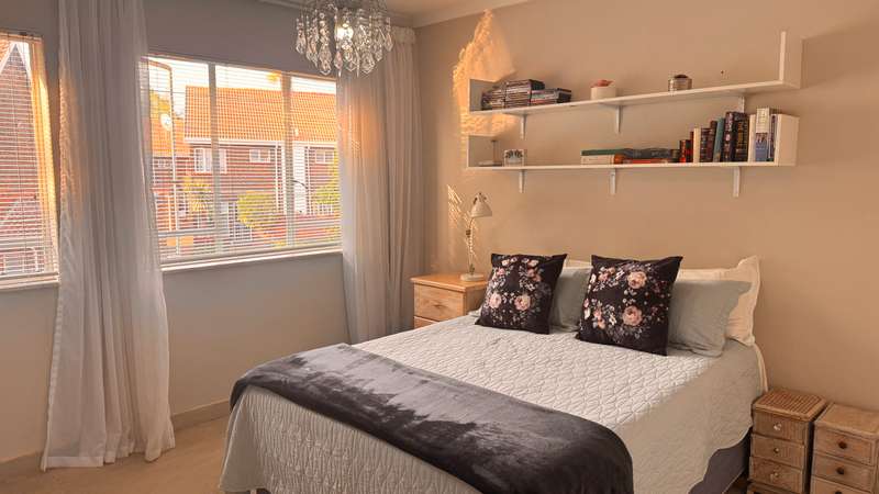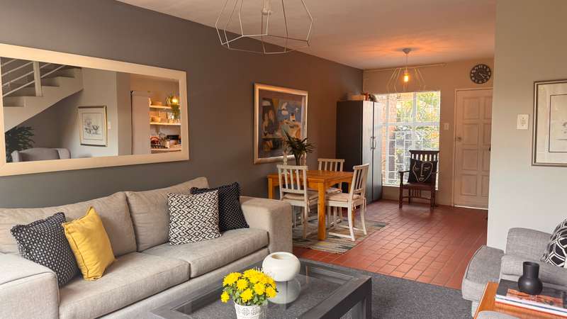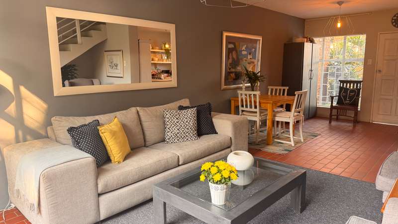 Spacious and modern 2 bedroom duplex, well located in a popular complex, The large lounge and dining area has tiled flooring and a lot of natural light. The sliding door opens onto a small private walled garden. The refurbished and well-planned kitchen with new wooden under counter cupboards, is all in white. Space for a dishwasher. The flooring of stairs and upstairs area is done in cement and gives it an all modern feel. The 2 spacious bedrooms are upstairs and serviced by a modernised bathroom with bath and over-bath shower. Private courtyard has allocated space for a top loader washing machine and tumble dryer. A lock up garage measuring 18m2 completes the picture. Water is included in the monthly levy. Here is a well maintained complex with communal swimming pool and easy access to main routes, schools and shopping centres. Pets allowed.