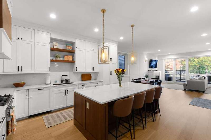 This is your opportunity to own this exceptional 3-bedroom, 2.1-bath duplex-down, featuring luxury and functionality with "better than new" construction in both design and craftsmanship. Nestled in the North Lake View neighborhood and the Blaine School District, this property showcases beautiful wide-plank flooring, a designated dining space, and an open-concept layout. The stunning chef's kitchen is a masterpiece, equipped with top-of-the-line appliances, quartz countertops, and sleek modern finishes, perfect for entertaining. The living room features a gas fireplace and a custom-built shelving unit with an integrated desk and cabinets for additional storage. High ceilings on both the main and lower level amplify the spacious feel of this home. The large primary bedroom in the lower level features a walk-in closet, blackout shades, and an opulent ensuite bathroom complete with heated floors for added comfort. The balcony off the living room provides a lovely space for relaxing or an added space when hosting. The attached garage is conveniently located below the building in the rear, protecting you from natural elements. Local amenities consist of Starbucks, Long Room Chicago, Port and Park Bistro, Tribu Caffe, Tango Sur, Bodega Sur, The Piggery, Brownstone, Trader Joe's, and the Irving Park Brown Line "L" stop, just a 9-minute walk away. Truly, this property and location offer the best of city living!