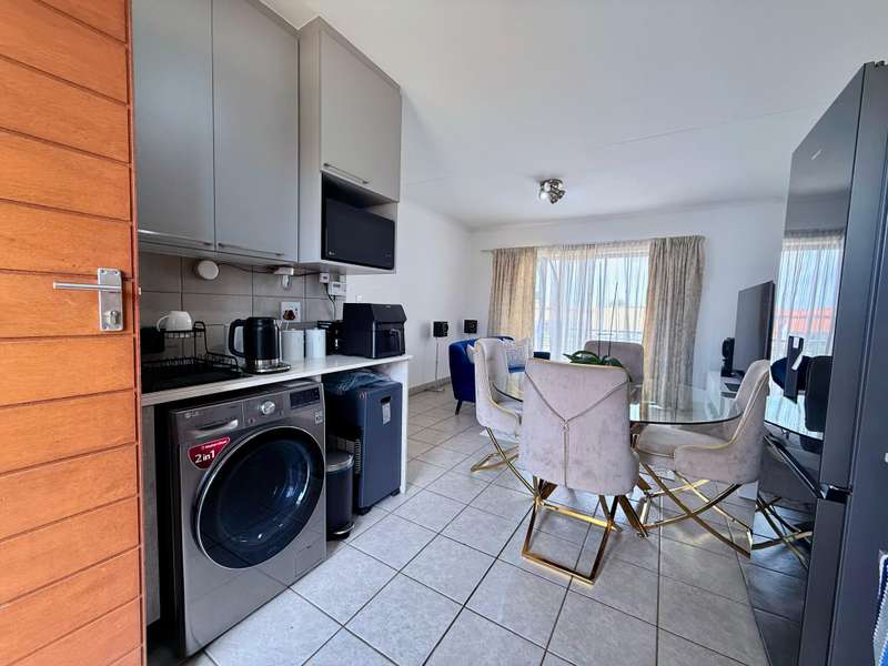 Welcome Step into comfort and convenience with this stunning two-bedroom apartment, perfect for modern living. Located in a secure, 24-hour security estate, this home offers both safety and peace of mind. The well-designed kitchen, positioned next to the dining area, allows for effortless meal preparation while staying connected with family or guests. The open-plan layout enhances the sense of space, making it ideal for entertaining. The two generously sized bedrooms provide ample storage and natural light, ensuring a cozy and inviting atmosphere. The full bathroom is beautifully finished, offering both a bathtub and a shower for ultimate relaxation. One of the standout features of this apartment is the balcony access, where you can unwind and enjoy breathtaking sunsets after a long day. Whether you're sipping coffee in the morning or relaxing in the evening, this outdoor space is the perfect retreat. The estate itself boasts 24-hour security, ensuring a safe and peaceful environment for residents. Conveniently located near essential amenities, shopping centers, and major transport routes, this apartment is an excellent choice for young professionals, small families, or investors. Don’t miss out on this incredible opportunity—schedule a viewing today!