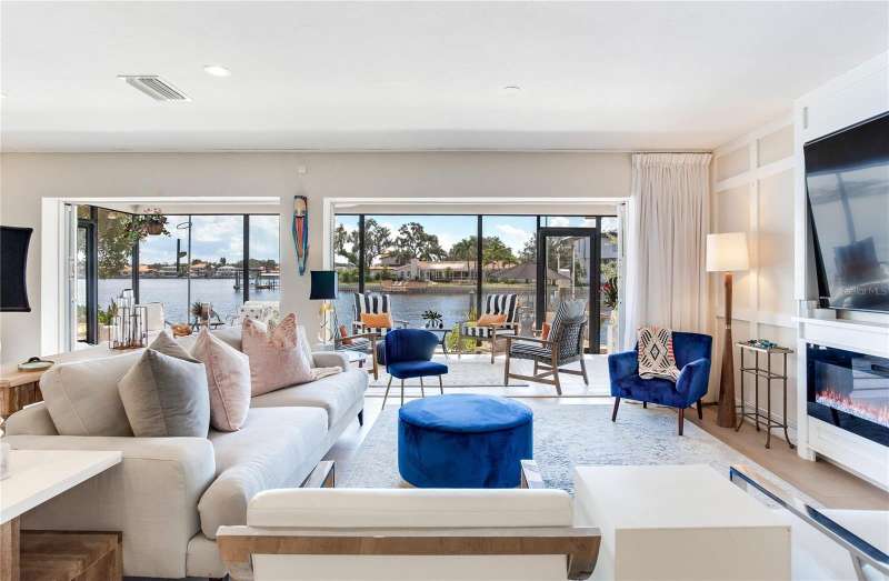 MODERN WATERFRONT RETREAT | CAR ENTHUSIASTS & BOATERS PARADISE Experience the ultimate in coastal living with this meticulously remodeled 4-bedroom, 3-bath residence offering 2,934 sq ft of luxury and 81 feet of sparkling waterfront on Smacks Bayou. Every detail of this home has been thoughtfully updated to create a modern oasis where lifestyle, functionality, and elegance converge. Waterfront Lifestyle - Wake up to panoramic bayou views, where dolphins are part of your daily backdrop. Enjoy breathtaking sunrises with your morning coffee and unwind to colorful sunsets from your expansive 58-foot screened porch. A private dock with boat slip and lift makes boating effortless—just minutes to open Tampa Bay waters. Seamless Indoor-Outdoor Living - The home’s design embraces open-concept living with a fully remodeled chef’s kitchen featuring an induction cooktop with MoveMode, quartz island seating for four, stainless steel appliances, and a charming breakfast nook. The living and dining areas flow effortlessly to the lanai, creating a perfect space for entertaining. A custom wine bar with 340-bottle Allavino cooler and built-in cabinetry elevates the experience. Private Retreats - The spacious primary suite offers water views and a spa-inspired ensuite with a fully remodeled bathroom. Two additional guest bedrooms—one ideal as a home office—plus a fourth bedroom ensure comfort and flexibility for family and visitors. Car Enthusiasts’ Dream Garage - A newly constructed oversized two-story garage is purpose-built for collectors and hobbyists, equipped with two hydraulic car lifts, and abundant space for tools, shelving, and mechanical equipment. RV owners will love the dedicated side yard with electrical and wastewater hookups.