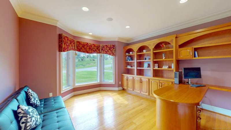This exquisite custom home, crafted by the acclaimed Lawlor Builders in 2001, is a masterpiece of luxury and design. Spanning over 5,400 SQFT across three levels, it offers an open floor plan tailored for effortless living and entertaining. Every detail of the interior reflects superior craftsmanship, with premium oak, marble, and granite flooring, oversized crown and trim moldings, and rare bullnose corners throughout. Elegant French doors, transom and Palladian windows, and arched doorways further enhance its sophistication. The outdoor space is equally impressive, featuring a private backyard oasis with a heated saltwater pool, spa, expansive patio, and deck-all perfect for relaxation or hosting gatherings. The property sits on nearly 1.5 acres of elevated land, offering breathtaking sunset views over rolling hills.Inside, the first floor welcomes you with a grand foyer leading to a formal living room, private office, and gourmet kitchen equipped with Viking and Sub-Zero appliances.