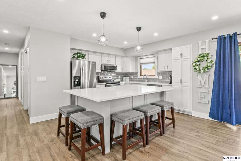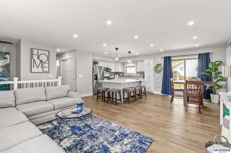 Your New Home Story Starts Here! Imagine stepping into your dream home fully updated and move-in ready in the highly-rated Millard North school district! This stunning 3 bed, 3 bath split entry is where modern design meets perfect home living. The heart of the home is the open-concept kitchen and family room, ideal for hosting or making cherished memories. Picture weekend brunches around the massive quartz island, plenty of storage with beautiful cabinets, gorgeous neutral luxury plank flooring, and a cozy electric fireplace accent wall, perfect for curling up on the couch with a good book. On the main floor you'll also find three spacious bedrooms, including a private primary suite with an attached 3/4 bath, plus another full bath. Downstairs is built for the ultimate entertainer! Outside, enjoy the fully fenced yard with a handy sprinkler system. Stop dreaming and start living your best life at 13432 Valley Street! AMA