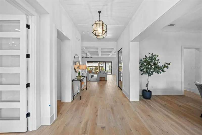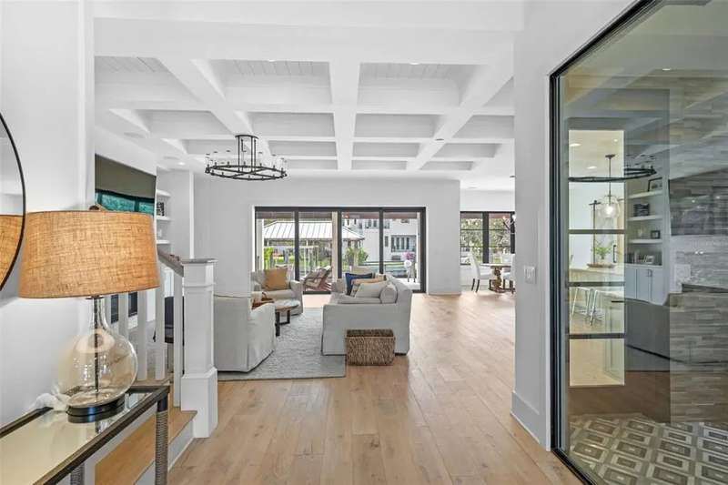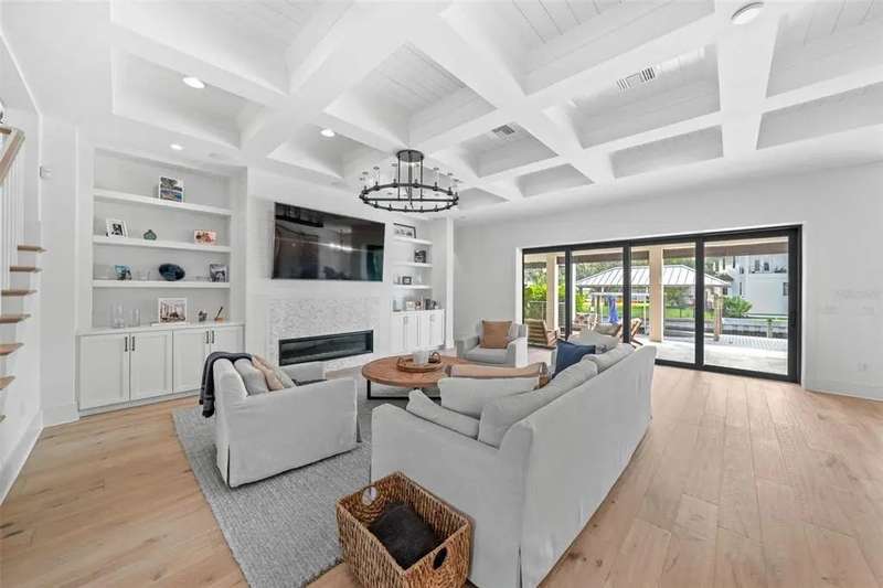 Davis Islands Modern Coastal on 100’+ of Waterfront with first-floor master bedroom. This custom-built residence blends timeless design with the highest standards of craftsmanship and is located on a quiet street on Davis Islands. The entry showcases a custom contemporary mahogany six-panel front door with impact glass and transom, opening to light-filled interiors defined by white oak engineered hardwood floors. A glass-fronted refrigerated wine cellar—with split-system cooling, floor-to-ceiling wood tile, stainless steel wine racks, a mahogany solid wood door, marble floors, custom cabinetry, and an electronic lock—serves as both functional storage and a striking design feature. The chef’s kitchen pairs marble counters and backsplash with premium appliances, complemented by a butler’s pantry and walk-in pantry. Living areas flow seamlessly to the outdoors through a 4-panel impact pocket slider, while PGT high-impact bronze windows with transoms on the front and rear elevations frame every view. Every element of the home reflects thoughtful engineering and luxury detail—from its piling foundation and concrete flat tile roof to the light sand finish stucco and custom Bahamian shutters with crafted metal railings and fencing that frame the façade. The primary suite offers two walk-in closets and a spa bath finished with imported marble flooring, counters, and shower, plus a freestanding soaking tub. Additional bedrooms include en-suite baths with marble finishes, continuing the home’s refined material palette.. At the water’s edge, a new seawall supports a composite dock with a covered 13,500lb boat lift—finished with a metal roof, lighting, water, and electric service. An additional electric 1,500lb lift lowers directly into the water, easing access for boating or water toys. The backyard is a showcase for Florida living: a contemporary rectangular saltwater pool with water-edge spa, glass waterline tile, umbrella stand, lounge area, and automated Hayward LED lighting. Surrounding the pool and lanai, silver travertine pavers set the stage for gatherings. The lanai’s cypress coffered ceiling frames a linear gas fireplace with a tabby shell stucco surround and a custom barnwood mantel, while a custom outdoor kitchen—featuring a Blaze grill and smoker with a double hood, stainless steel backsplash, beverage center, concrete counters, sink, and an Ipe wood surround—makes entertaining effortless. A plumbed outdoor shower with hot and cold water completes the resort feel. Six gas lanterns accent the entry and garages, bringing coastal character to evening hours. The oversized three-car garage offers versatility with a deep two-car bay (workbench and storage included) and an extended one-car garage sized for a golf cart. A whole-house generator ensures comfort and security year-round. Come enjoy the DI lifestyle with its walking and bike path, and just a short distance away from Davis Islands Village with many restaurants, shops, and bars. Bring your golf cart and enjoy the Island lifestyle with baseball fields, public tennis courts, a public historic pool, two dog parks (one wet and one dry), a beach, a public marina, and an airport. Located only minutes from Downtown Tampa, Water Street, Sparkman Wharf, and the Tampa Riverwalk, this neighborhood is the most desired in South Tampa!