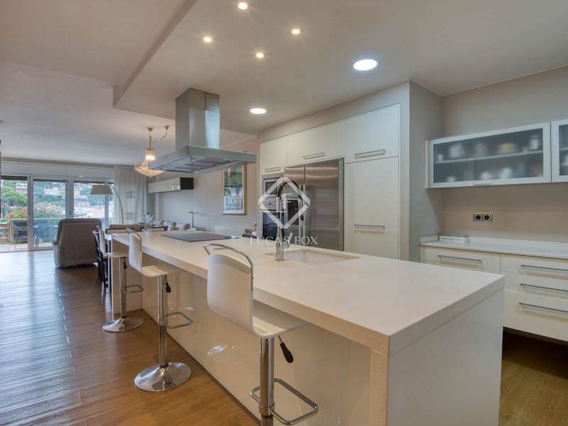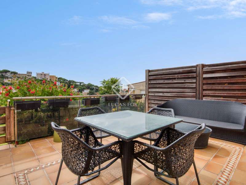Lucas Fox presents this exclusive townhouse between Sant Feliu de Guíxols and S'Agaró, at the gates of Les Bateries, one of the most exclusive and sought-after locations on the Costa Brava. It is located just 10 minutes walk from the beach of Sant Pol and Sant Feliu. The spacious and comfortable property boasts a surface area of 218 m², with well-organized spaces for everyday life and perfect corners for relaxation. It has a private elevator connecting all four floors. In the basement, there is a closed garage with capacity for two cars and a large room used as a utility room, ironing room and storage. The main floor features a spacious living-dining room with an open kitchen, a bright courtyard , and a guest toilet. The terrace provides direct access to the communal garden with a pool. On the first floor, there are two bedrooms: the master bedroom with a private bathroom and a second bedroom with its own sink on the same level. Finally, on the top floor, there is a third bedroom with a toilet and a private terrace with sea views, a unique corner to relax and unwind. The property enjoys a prime location, with a nearby bus stop and direct access to the greenway for walking or cycling. It is surrounded by restaurants, shops, and all necessary amenities . It is also just 30 minutes from Girona and one hour from Barcelona, making it a perfect choice for both a primary and secondary residence.