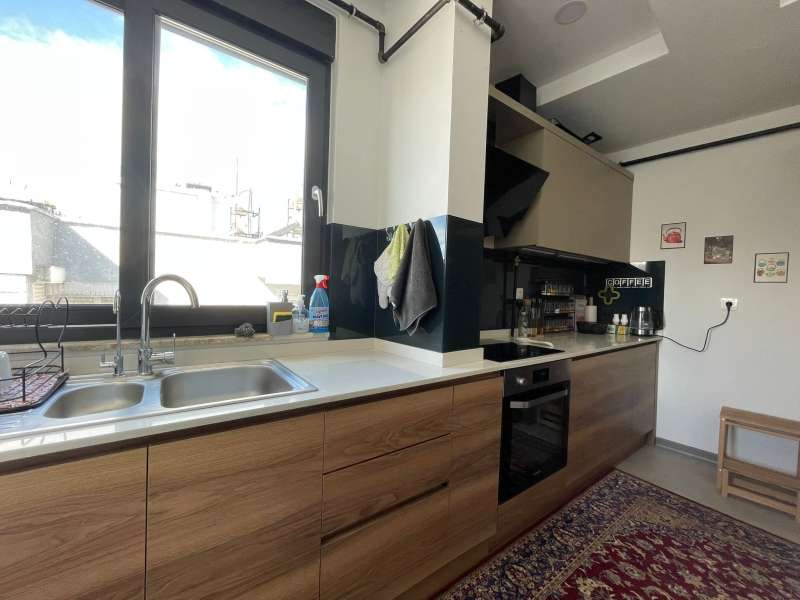 The fully furnished flat is equipped with a natural gas boiler, an underfloor heating system, blinds, built-in kitchen appliances, a shower cabin, a central satellite TV system, and a cloakroom.