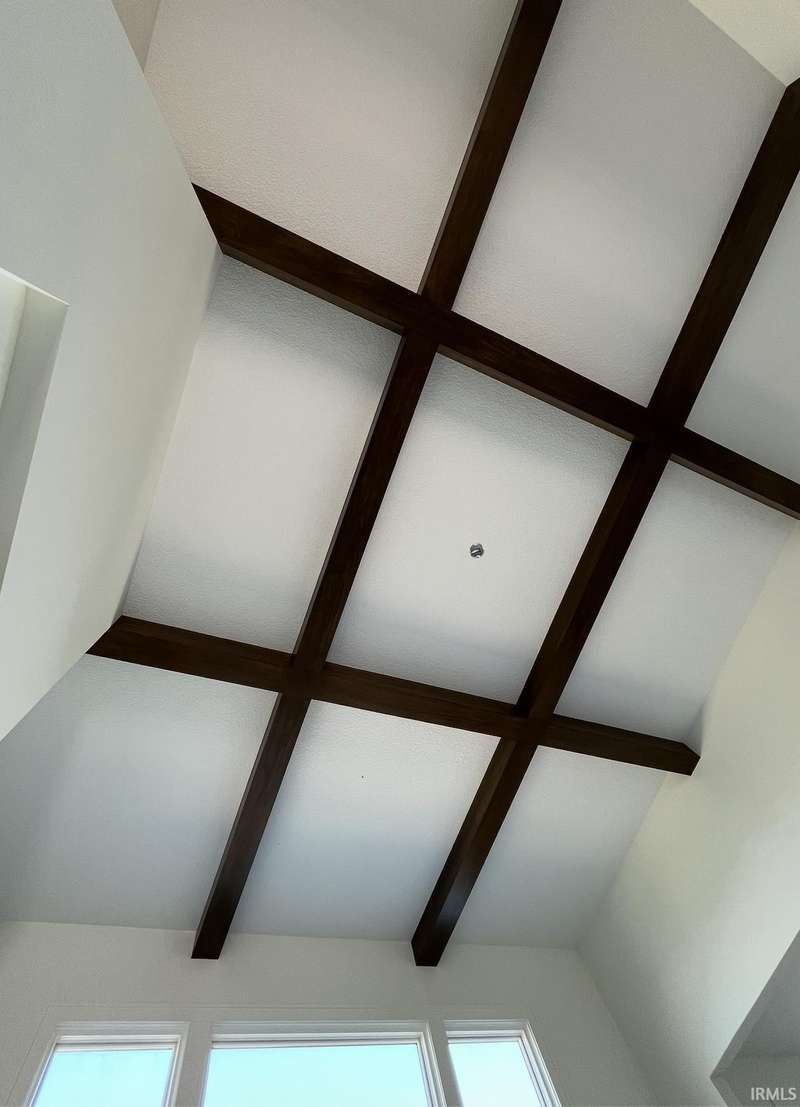 New Construction by Bob Buescher Homes | Estimated Completion: October 31, 2025. Welcome to this stunning new home located in the highly sought-after Tullymore Run community near Leo, Indiana. With 4 bedrooms, 2.5 bathrooms, and 2,689 square feet of beautifully designed living space, this residence is nestled on a picturesque water lot, seamlessly blending luxury, comfort, and tranquility. Upon entering through the foyer, you are greeted by an expansive great room featuring an 11’8” ceiling adorned with rich wood-stained beams and large picture windows that flood the space with natural light. A striking gas fireplace adds warmth and charm, creating the perfect atmosphere for cozy evenings or entertaining guests. The great room flows effortlessly into the open-concept designer kitchen, which boasts hickory cabinets, quartz countertops, a spacious island, and a walk-in pantry with a 42” cabinet—ideal for a coffee bar or additional storage. Adjacent to the dining area, a versatile flex room is perfect for use as a sunroom, den, or home office. The main level also features a thoughtfully designed primary suite, complete with a spa-like en-suite bathroom that includes a custom tiled, zero-entry walk-in shower, dual quartz vanities, a linen cabinet, and an oversized walk-in closet. The conveniently located laundry room is just steps from the primary suite, adding to the home's ease of living. Upstairs, a spacious bonus room awaits, serving as an ideal family lounge, media room, or play area. Three generously sized bedrooms and a full bathroom with a double vanity complete the upper level. Step outside to a beautifully covered rear porch, where tranquil water views provide the perfect setting for outdoor relaxation. Additional highlights of this exceptional home include luxury vinyl plank flooring throughout the main living areas, plush carpeting in the bedrooms and bonus spaces, and an attached 3-car garage with ample space for vehicles, storage, or a workshop. This residence showcases quality craftsmanship, modern design, and everyday comfort—all within one of Northeast Indiana’s premier neighborhoods. Don’t miss your opportunity to make it yours!