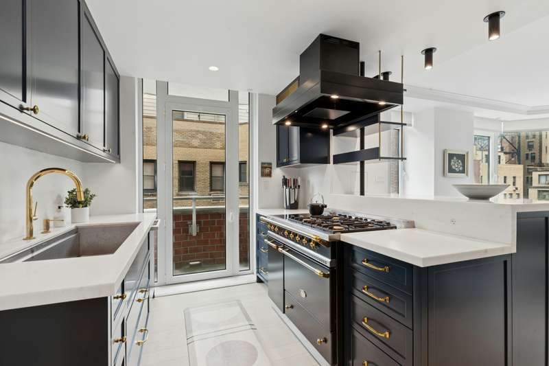 The chef's kitchen is both striking and functional, featuring custom-built cabinetry, Vermont Imperial Danby marble countertops, and a Galley Workstation sink. ;Italian pendant lights hover above the breakfast bar, framed by a floating bookshelf. Appliances are top-tier: Lacanche Saulieu range, Sub-Zero refrigerator, Miele speed oven and dishwasher, smart wine cooler, and Italian Bocci flush outlets. A fully custom walk-in pantry completes this elevated ;culinary space. Adjacent to the kitchen, a discreet laundry closet houses a full-size, vented Electrolux washer and dryer - a rare and practical luxury in city living.
