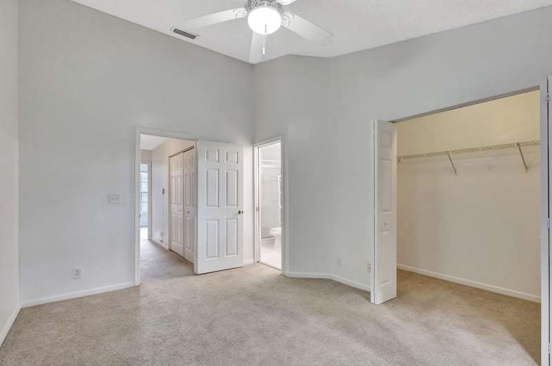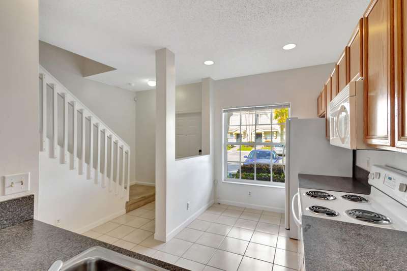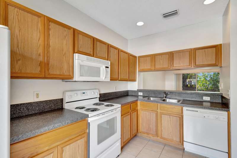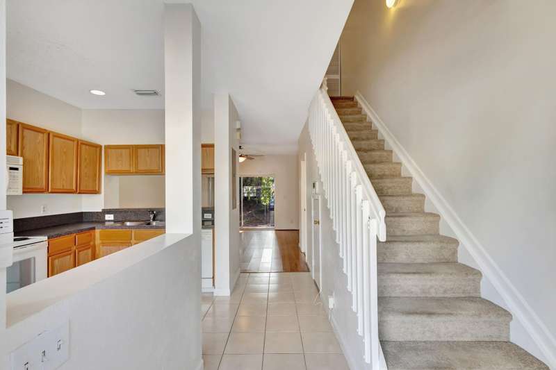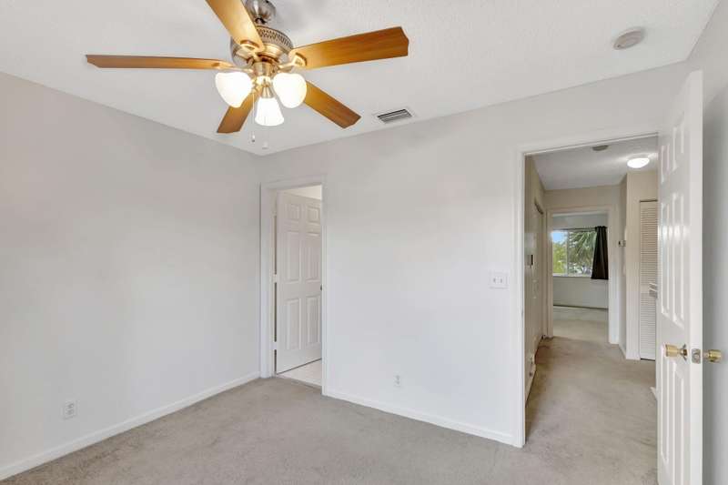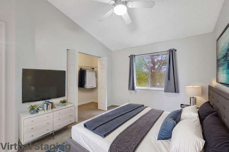 FHA & VA FINANCING WELCOMED! This spacious home offers an open living area, a large kitchen with oak cabinets, and a convenient half bath on the first floor. Upstairs are two bedrooms, each with ensuite bathrooms, plus a dedicated laundry area with full-size washer and dryer. Enjoy a covered patio with storage room, two assigned parking, and guest spots. Monthly fee covers basic cable, internet, and alarm. Pet-friendly and large breads allowed. No rental waiting period—ideal for investors! No minimum credit requirement. Located in a quiet, gated community offering resort-style amenities: pool, clubhouse, gym, volleyball court, and playground. Close to shopping, parks, schools and major highways.
