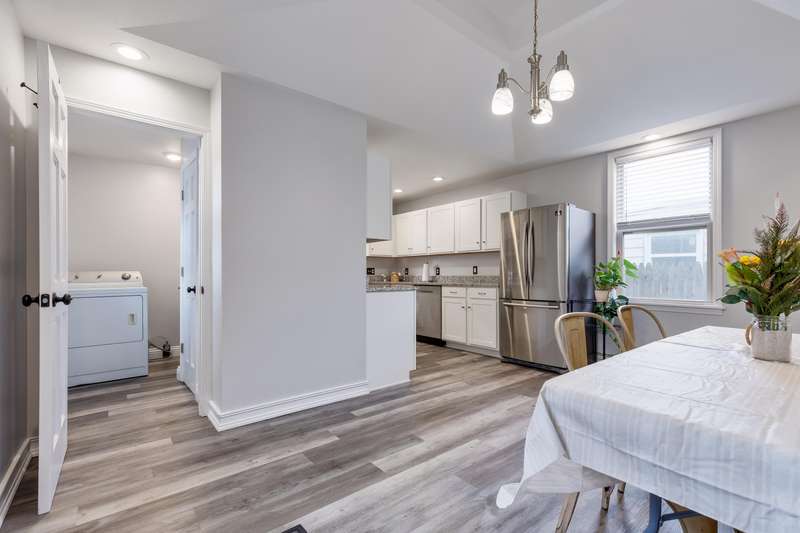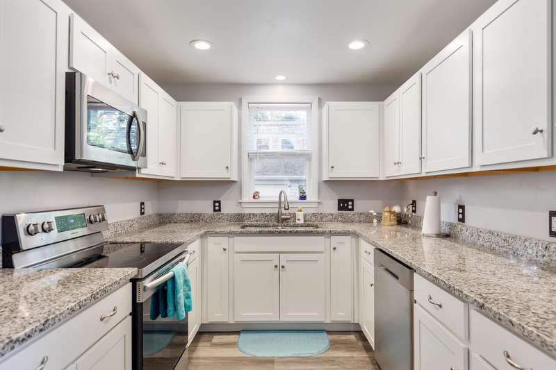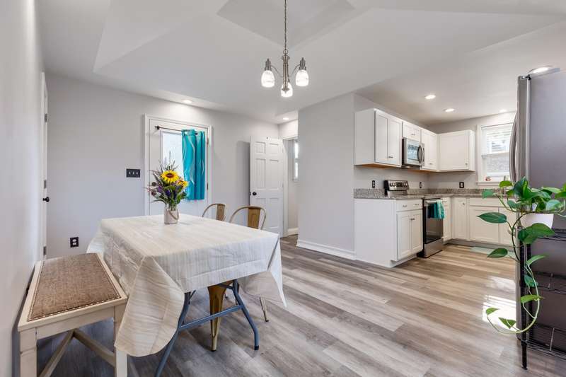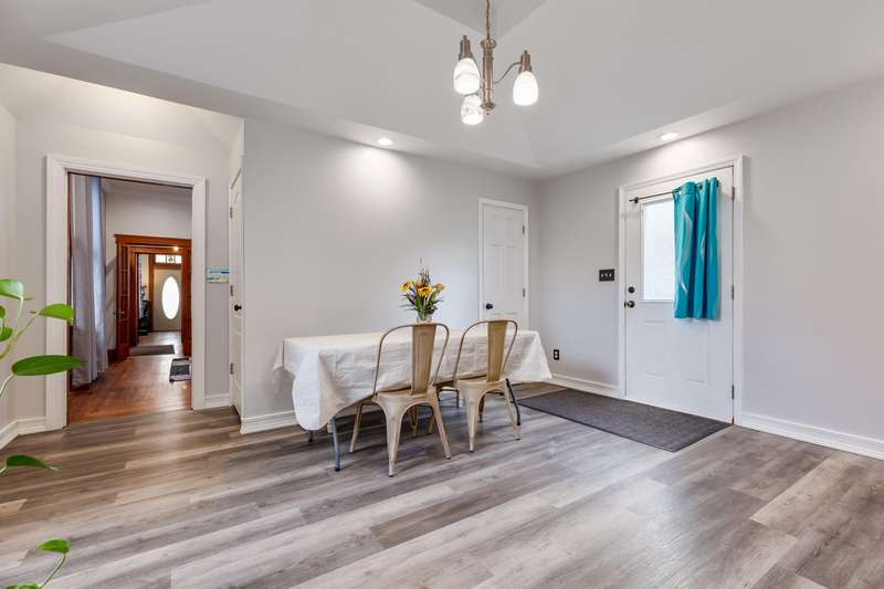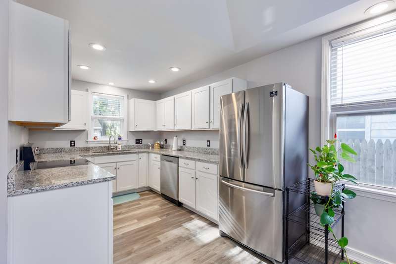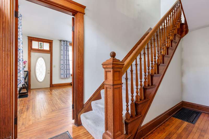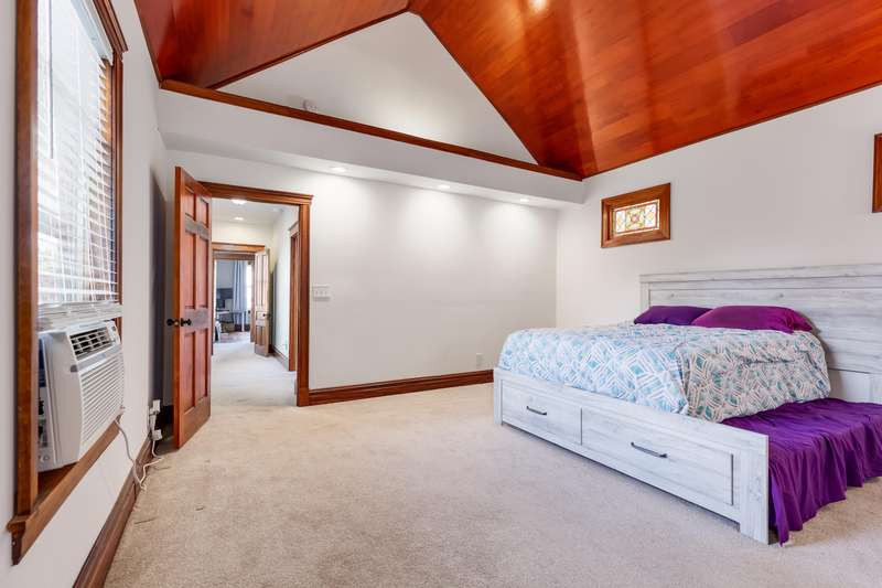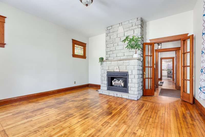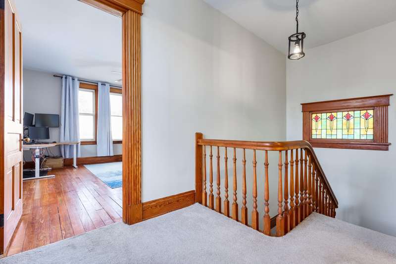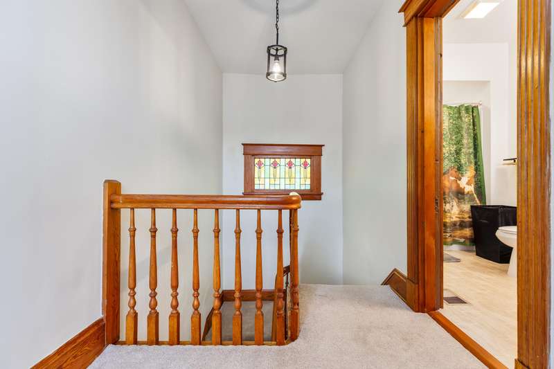 Stained Glass and Stainless Steel! Don't miss the opportunity to have best of both worlds a historical home with modern features! Enjoy the flexibility of rooms on the first floor while having luxury on the second floor with a vaulted ceiling primary bedroom that includes a walk-in closet and en suite bathroom! Not only does this home have off street parking but it has a driveway, fully fenced in yard for pets and a TWO-STORY GARAGE! You will not find a home similar to this nearby especially because there is NO FEMA!