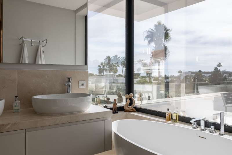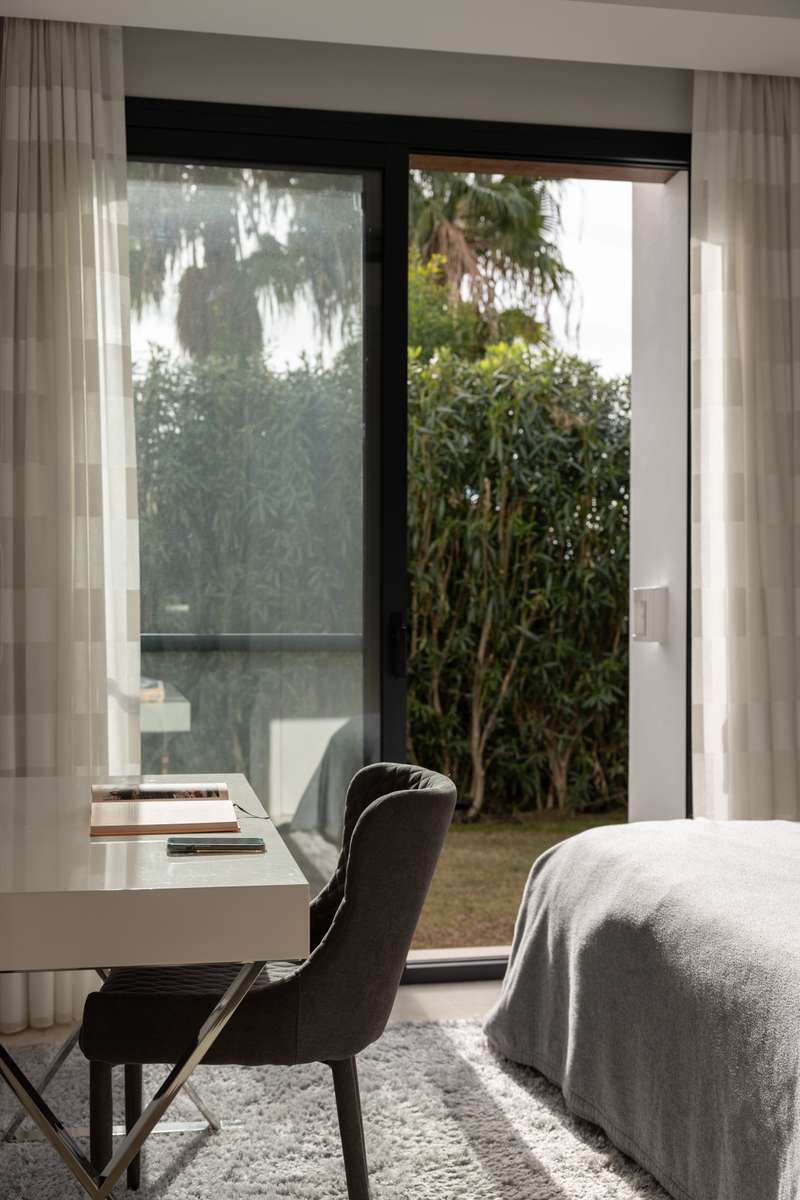 Nestled in the heart of the enchanting Paraiso Medio on the renowned New Golden Mile, this independent villa is a testament to understated luxury living. Boasting six bedrooms, each accompanied by its own en-suite bathroom, this residence provides the pinnacle of comfort and privacy. Located in the prestigious area of Cortijo Casareño, this property is not just a residence; it's an invitation to enjoy life and the unparalleled Costa del Sol´s lifestyle. Upon entering the property, an immediate sense of space is felt thanks to an open and bright contemporary design. The open plan kitchen is designed for functionality and style, integrating seamlessly with the spacious living room and interior dining area and porch. Natural light floods through the large windows, perfectly integrating the interior and exterior spaces. Meticulously maintained and thoughtfully upgraded, entertainment knows no bounds in this villa, with a dedicated games room providing a space for leisure and social