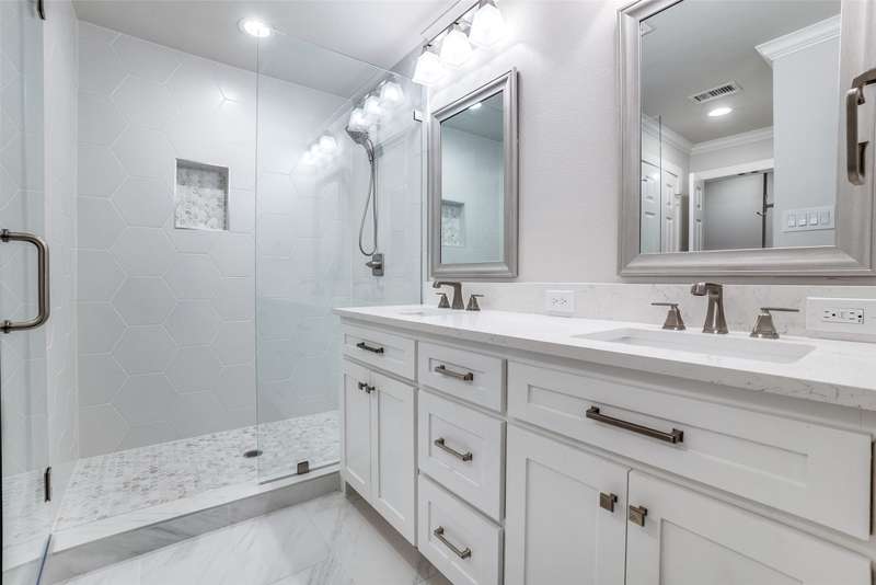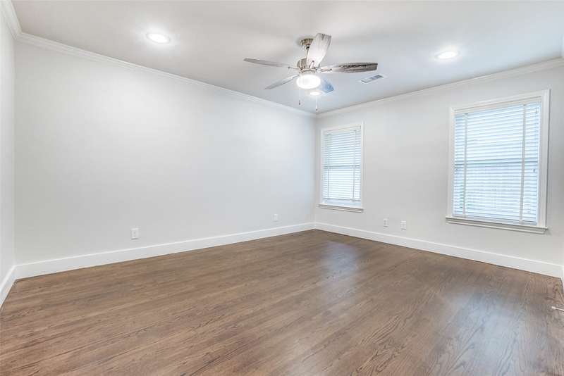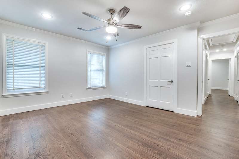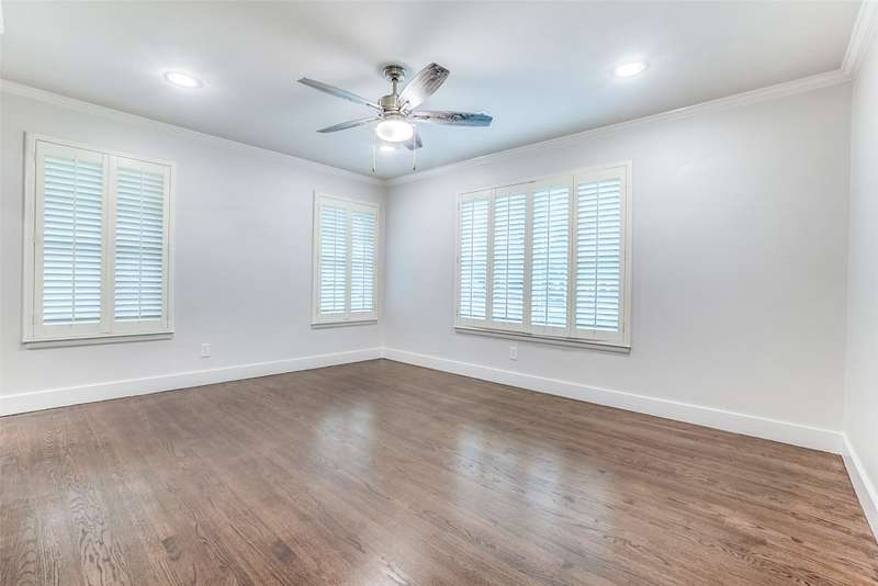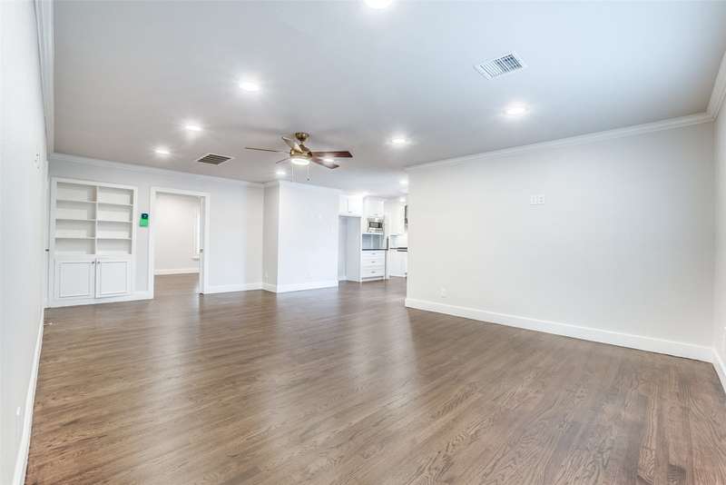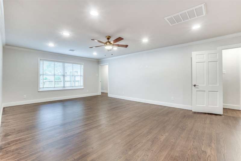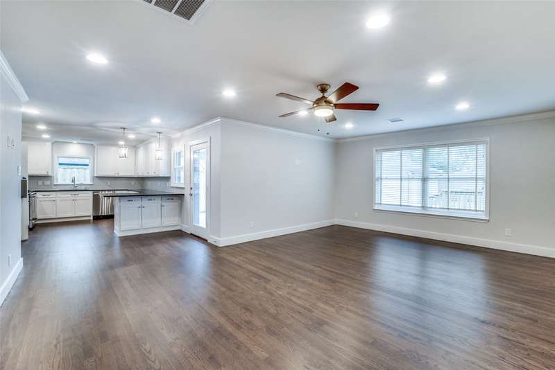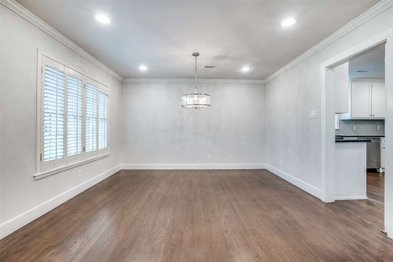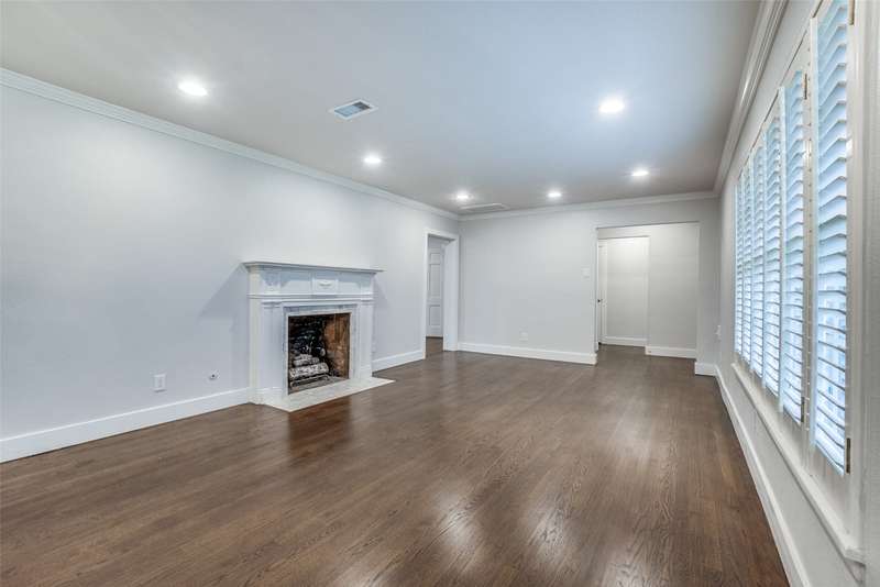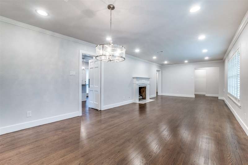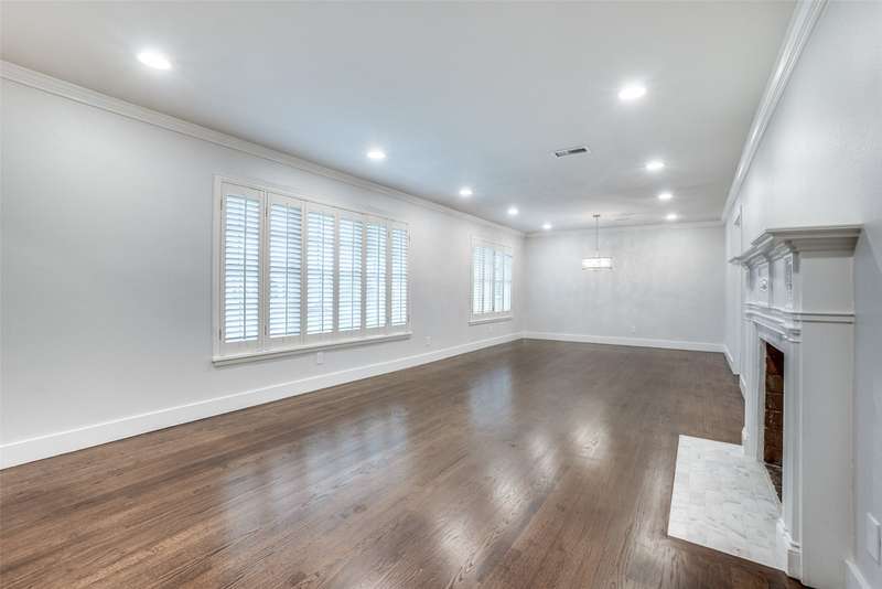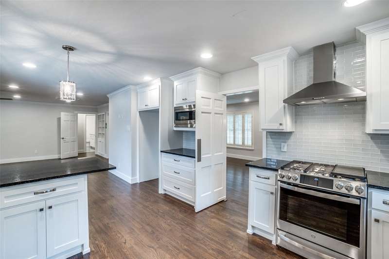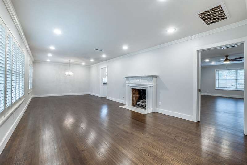 Beautifully remodeled one-story in coveted Preston & Royal area! This gorgeous transitional home boasts hardwood floors throughout and an open floorpan with soothing designer colors & finishes. The kitchen features granite counters, stainless appliances and is open to a large den. There is a spacious separate formal living-dining area with gas fireplace. Large master bedroom has a deck to backyard and features ensuite bath and with oversized shower, dual sinks and designer finishes. Generous sized secondary bedrooms both with separate baths. The large backyard is perfect for playing and entertaining.