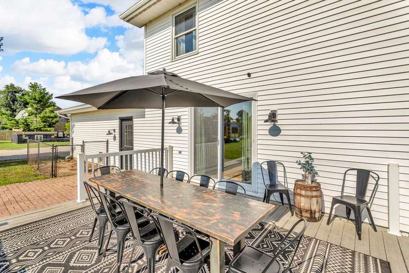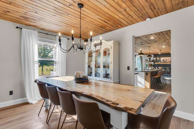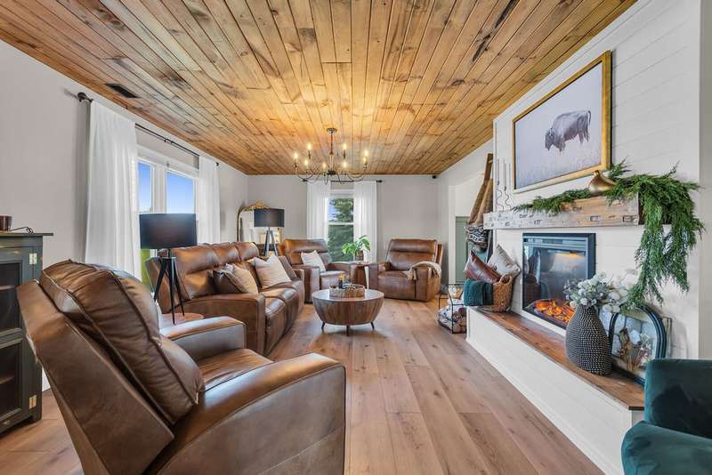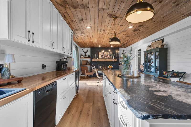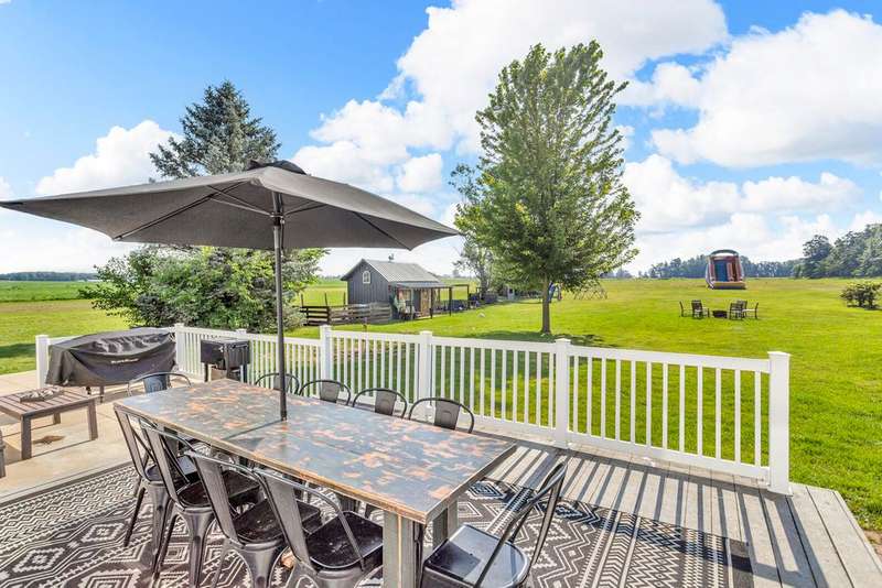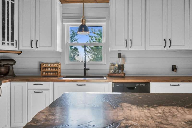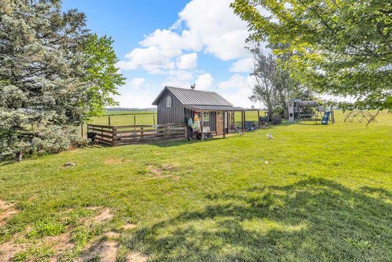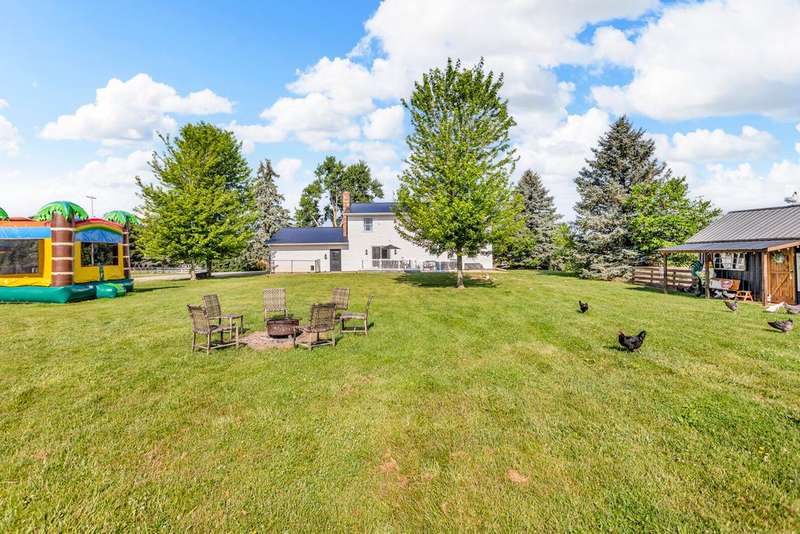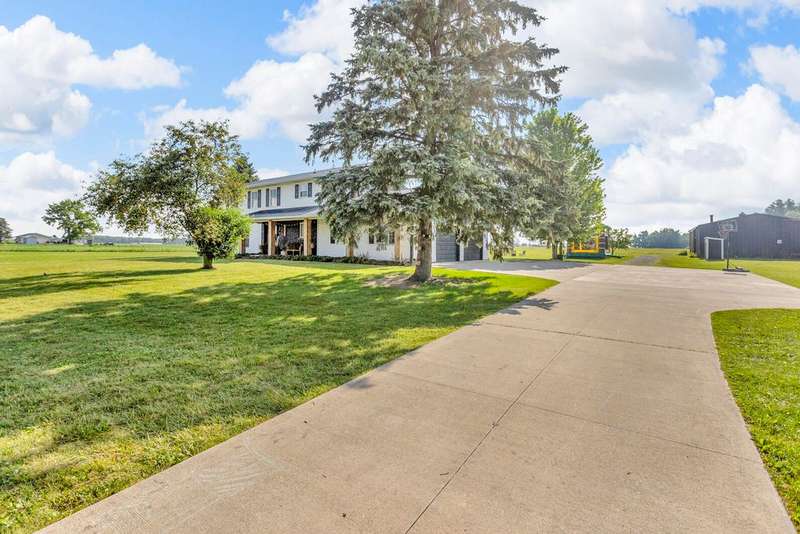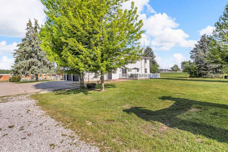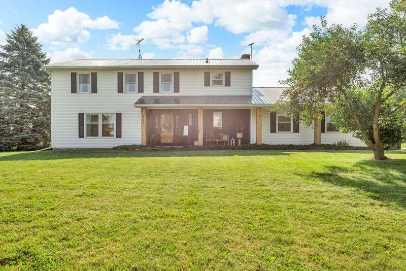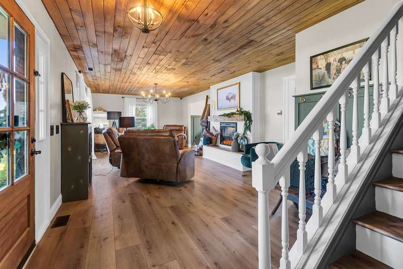 Discover the perfect blend of charm and functionality in this beautifully remodeled 5BR/3BA farmhouse with a 2.5 car garage nestled on 10 acres of open land. Whether you're seeking space, serenity, or a place to pursue agricultural hobbies, this property offers a versatile lifestyle opportunity. Step inside to find a thoughtfully updated home where every detail has been refreshed. The spacious kitchen is a standout, featuring Brand-new appliances, Leather granite countertops, butcher block accents and a large island ideal for cooking, gathering, or entertaining. The kitchen flows seamlessly into a formal dining room and a cozy eat-in area with a wood-burning fireplace, adding warmth and character. A convenient first-floor laundry room enhances everyday living. Upstairs, the generous primary suite includes a full bathroom and walk-in closet. Additional bedrooms offer flexible space for sleeping, working, or relaxing. Finished basement has storage, office, 2nd laundry, bunker, 5th BR.