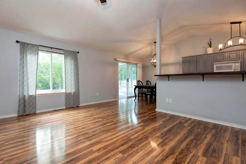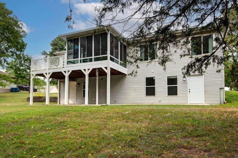 2 wooded acres with a FLAT backyard! Arguably the best value on the market and the ONLY listing in the neighborhood. Located on the coveted North side of Branson just 7 minutes to Branson Buchanan Elementary School and Branson High School. Superclose proximity to 65, The Highroad, and Branson Hills for shopping, dining, golf, etc... Also located in Branson's best nature corridor with easy access to Roark Creek, The Ruth and Paul Henning hiking trails, and the upcoming Ozark Mountain State Park.This 5 bedroom, 3 bathroom home brings SO much for the $$. All daily living can be done on the main floor! Super open plan with tall ceilings and TONS of light. NO carpet! The main level features the living room, dining room, mud room, kitchen, sunroom, master bedroom and en-suite bathroom, guest bedroom and bathroom. There is a wonderful sunroom PLUS a deck.Lower level has SO much room for activities; walk-out basement with 3 additional bedrooms, brand new bathroom and plenty of storage!Situated on what some call the best street in the neighborhood, Meadow Ridge N St has well-spaced homes and has a more estate- like feeling.RV pad and hookups! Just up the road from the recently revamped playground. LOW HOA dues cover water, sewer, playground, and common area maintenance.This is the perfect place to make a home!