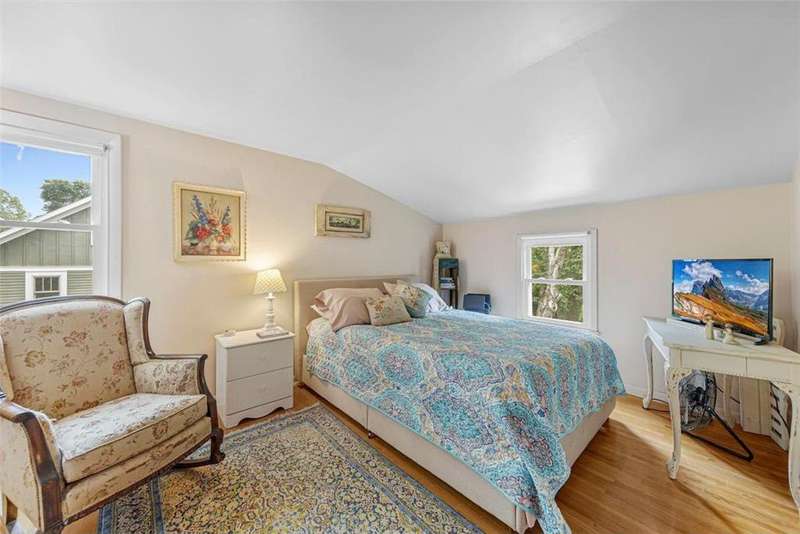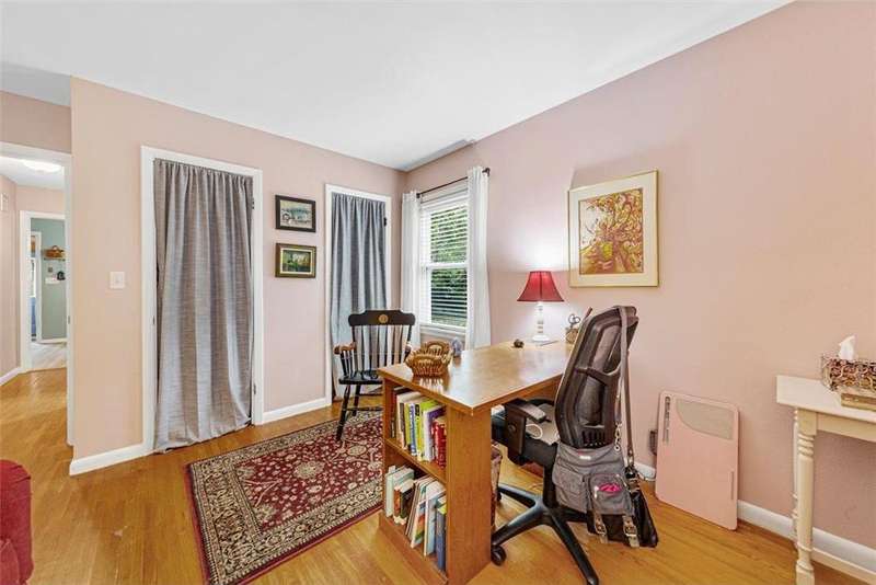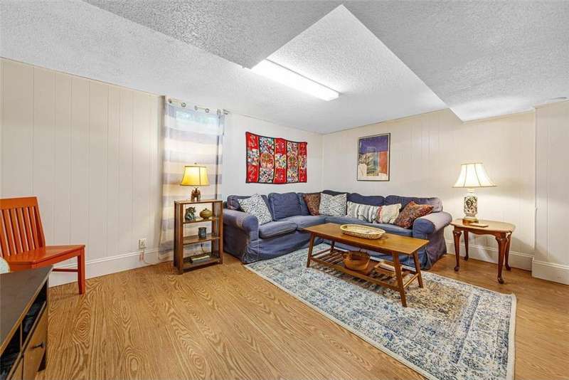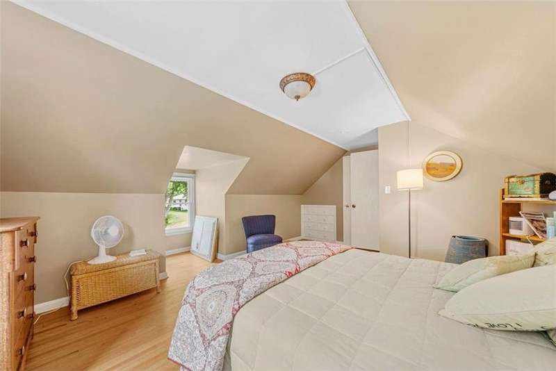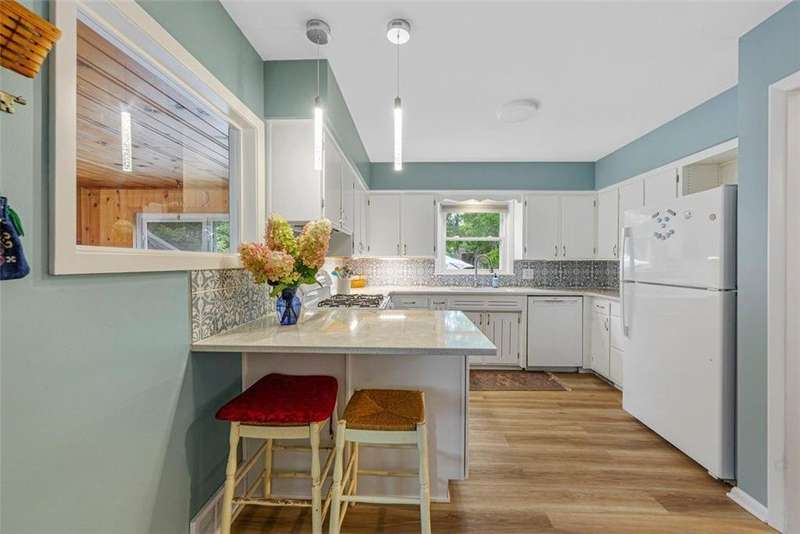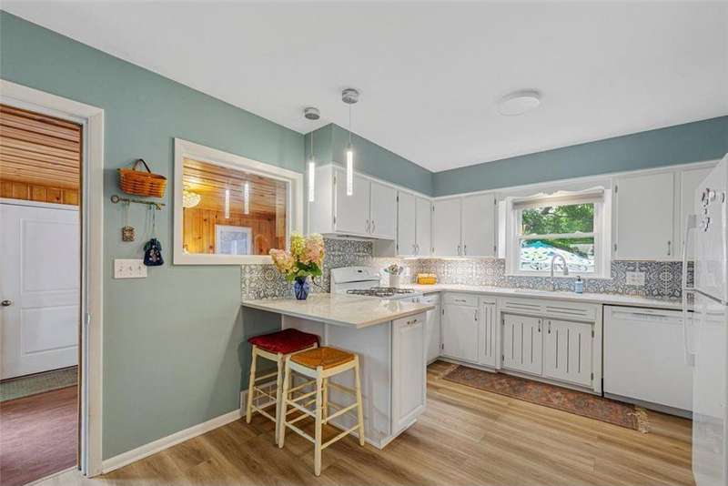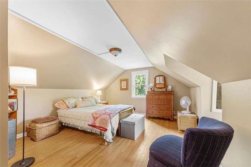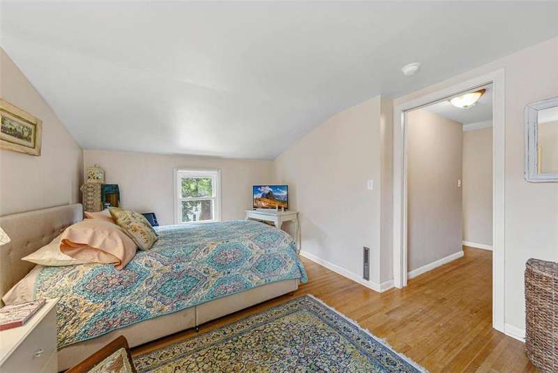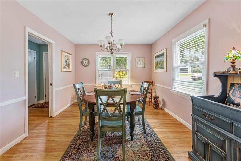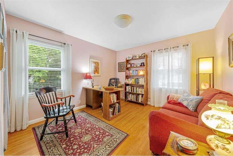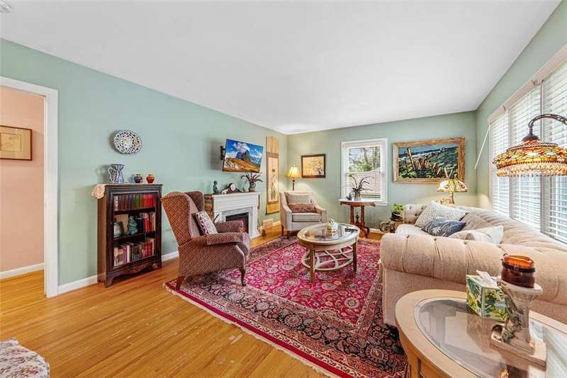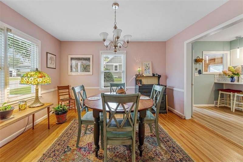 This charming immaculately maintained 3-bedroom, 2-bathroom home exudes character and warmth. Step inside to discover original hardwood floors that flow throughout, complemented by an abundance of natural light that fills the inviting living room. The separate dining room is bright and welcoming, ideal for family gatherings or entertaining friends. The kitchen boasts stunning quartz countertops, combining style with functionality. The four seasons porch features tongue & groove ceilings and walls, enhancing the home's unique charm. Upstairs, you'll find two cozy bedrooms. One of the bedrooms has a hidden storage room which adds a fun surprise for kids or extra storage needs. The main level offers an additional bedroom, providing flexibility for guests or a home office. The partially finished basement includes a spacious family room, perfect for movie nights. The private oasis backyard is beautifully landscaped, featuring a lovely brick patio and steps leading to a serene retreat. The oversized one-car garage provides ample space for parking or storage. When you drive up you will appreciate the amazing curb appeal and the quiet neighborhood location. This delightful home truly has it all!