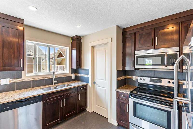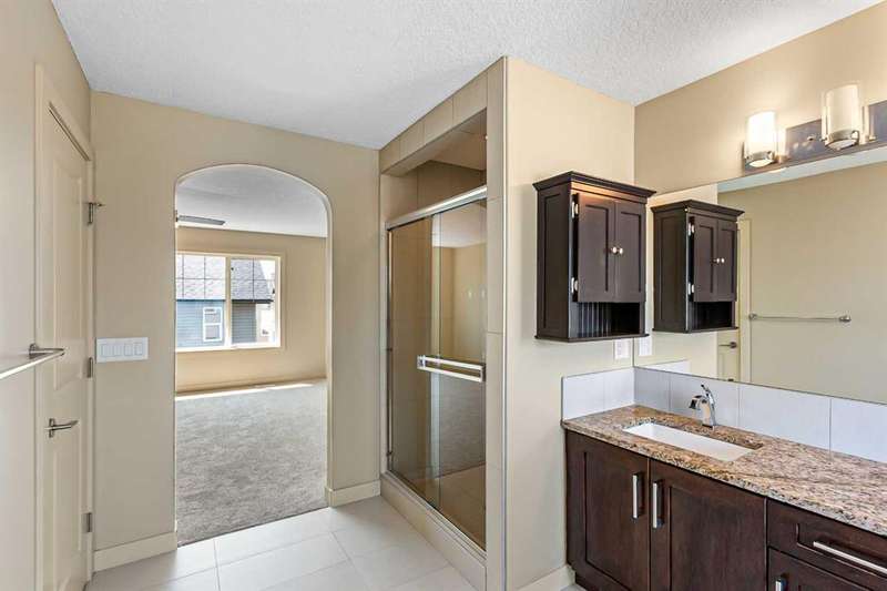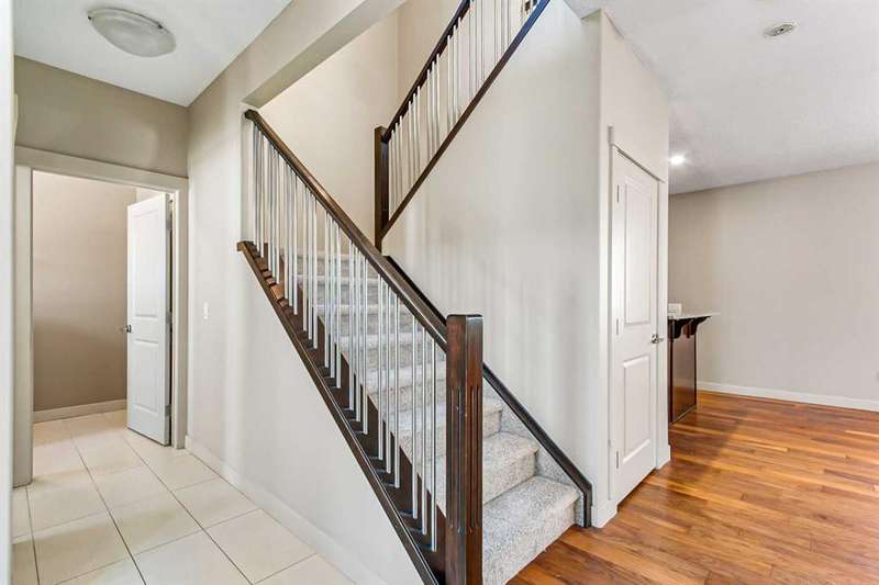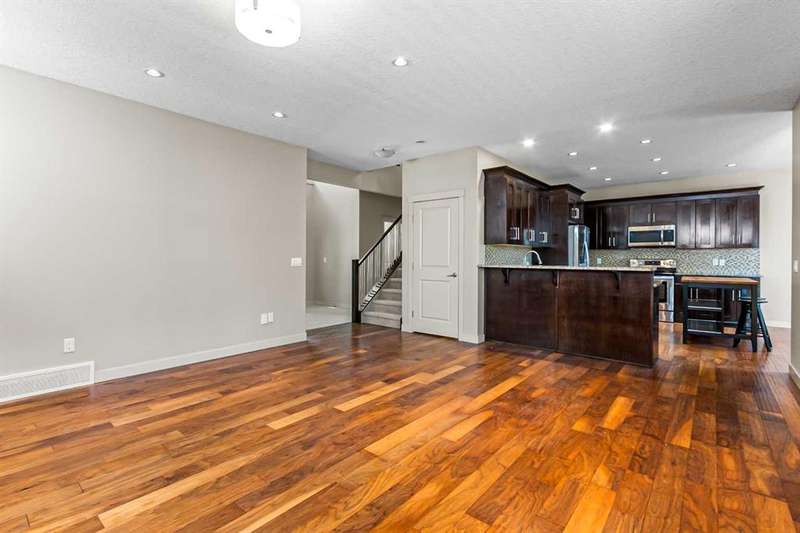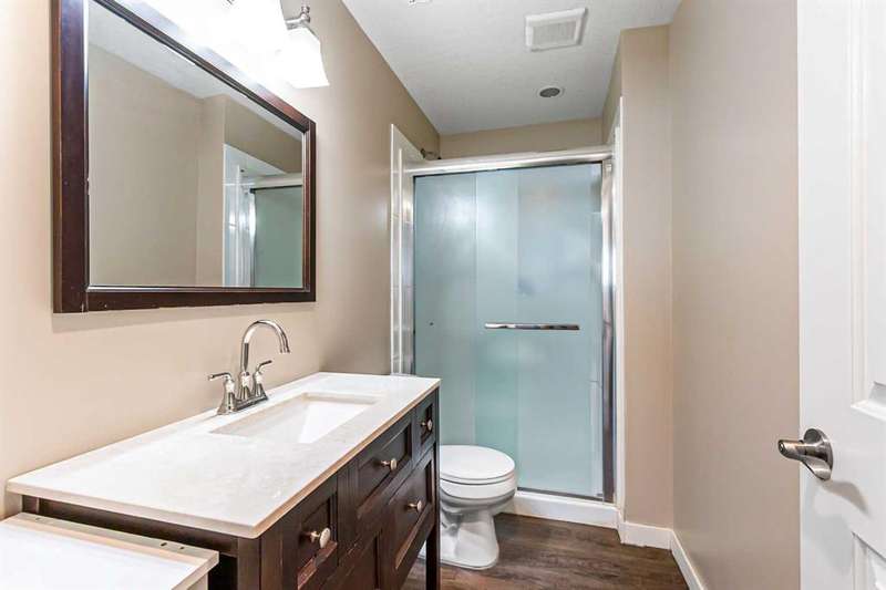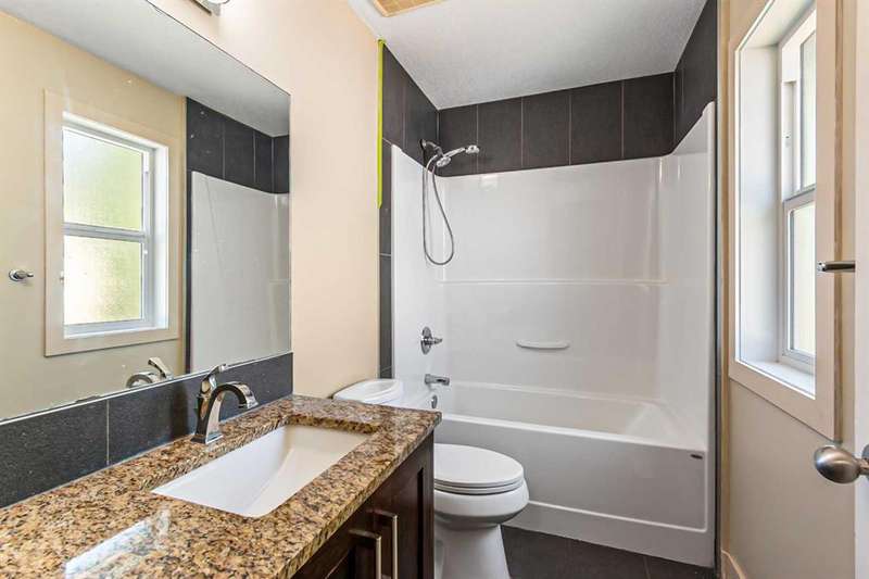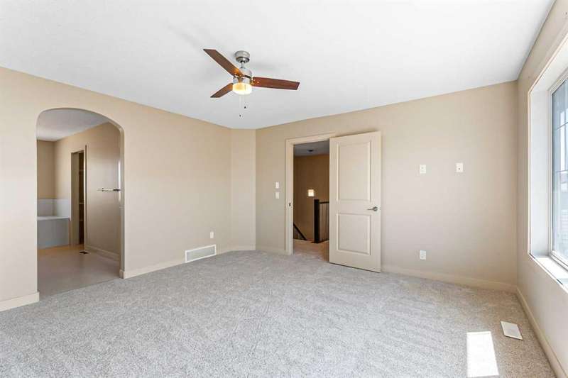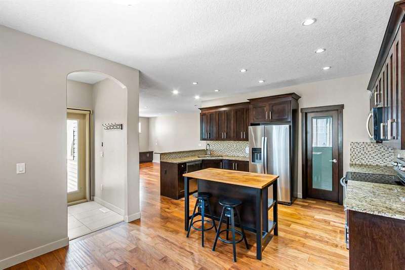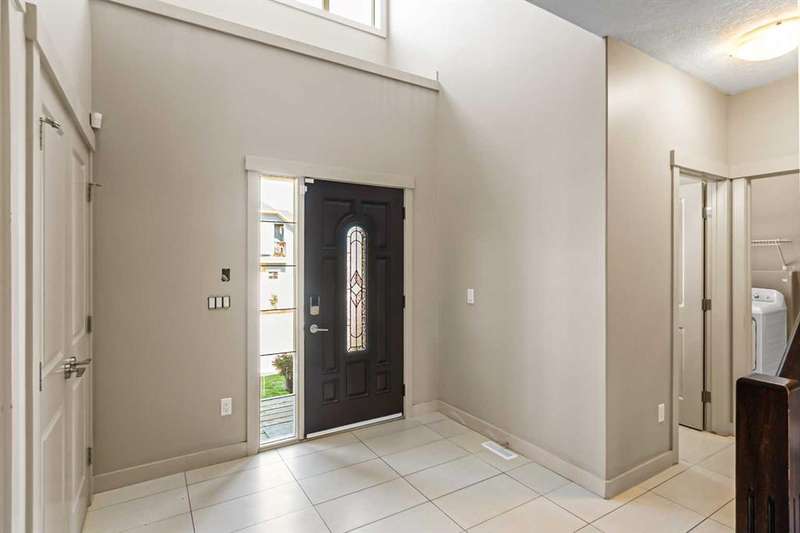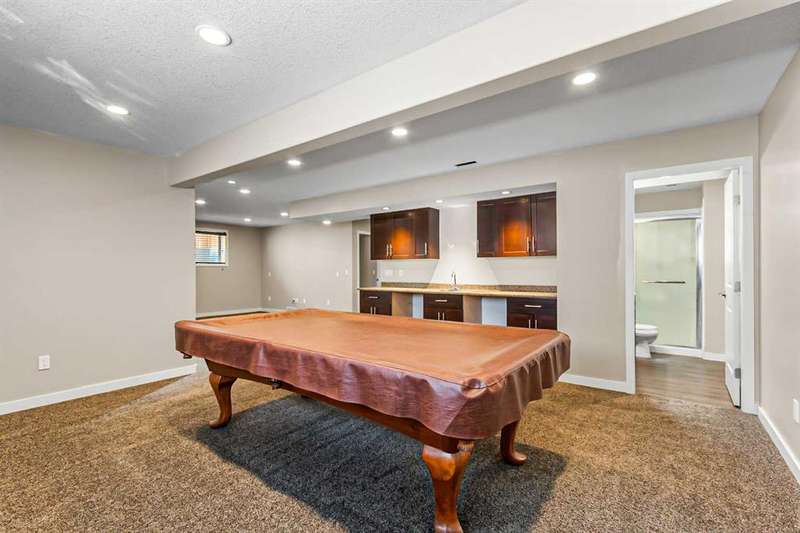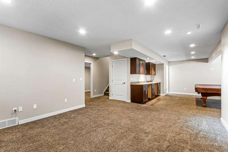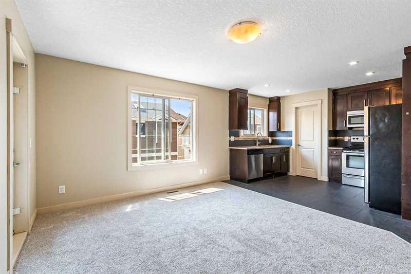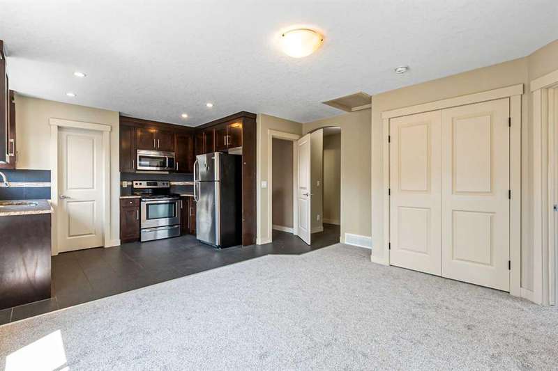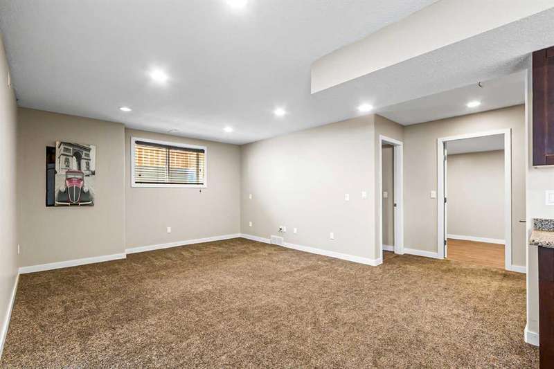 Welcome to this FULLY finished home in the Canals with a LEGAL SUITE and TRIPLE GARAGE. Whether you are looking for extra space, a legal suite, or just a place with room to grow, this property offers it all. The spacious two-storey foyer creates an impressive entrance and flows effortlessly into the rest of the home. The main level features rich hardwood floors, a bright and spacious living room, and a gourmet kitchen with granite countertops, stainless steel appliances, corner pantry, and ample cabinetry. A dedicated home office, laundry area, and a 2pc bath complete this level. Upstairs, the primary bedroom offers a generous ensuite with a jetted tub, separate shower, and a walk-in closet. Two additional bedrooms and a full 4pc bathroom complete the upper floor. The fully finished basement delivers incredible versatility with a theatre room (ready for surround sound), games area with bar, two flexible-use rooms (perfect for storage, crafts, or a gym), and a 3pc bath. Step outside to a beautiful deck and spacious yard, an ideal spot to relax and spend time together. And the showstopper? The LEGAL SUITE above the garage, complete with its own private entrance, kitchen, pantry, spacious living room with balcony, bedroom, 4pc bath, and laundry, all designed to match the same high-end finishes found in the main home. Recent updates include FRESH PAINT and NEW CARPET in both the main house and the legal suite. Located just steps from scenic pathways, green spaces, and the picturesque canals, in one of Airdrie’s most desirable communities. Book your private showing today!