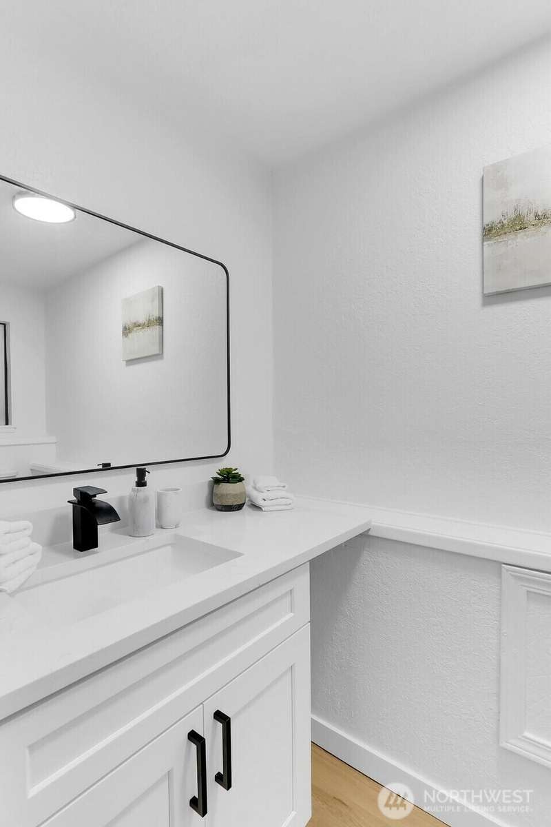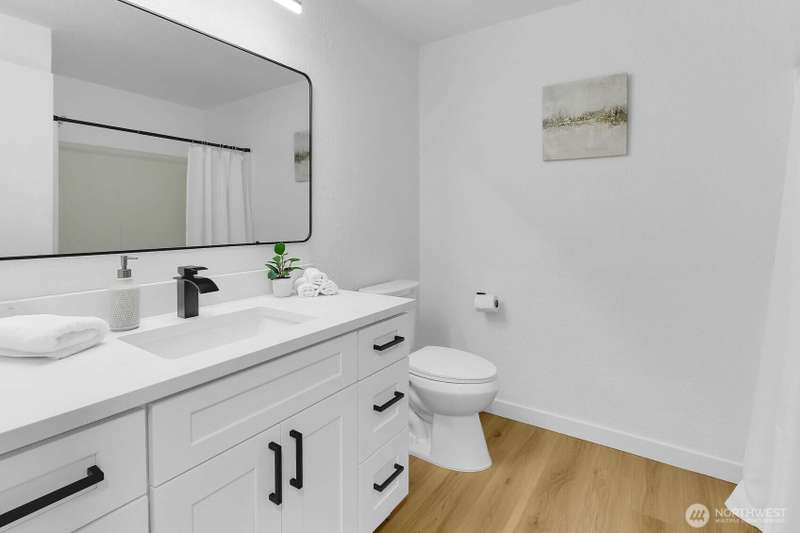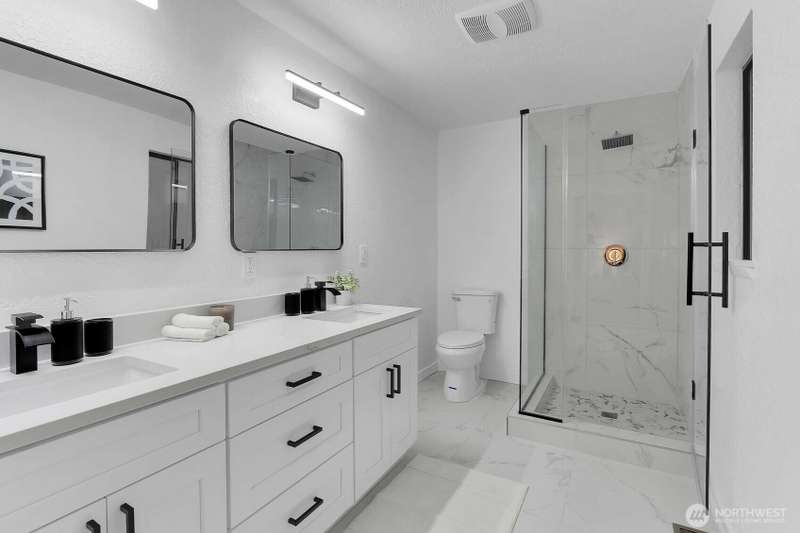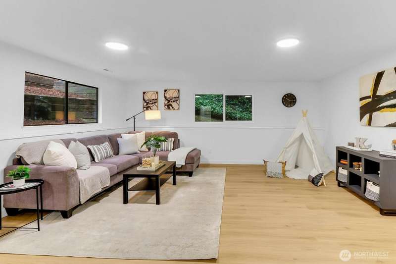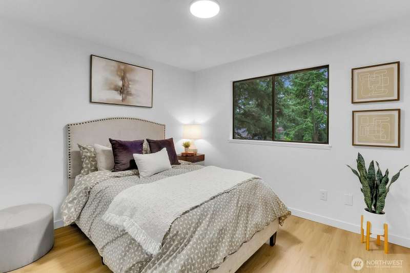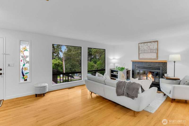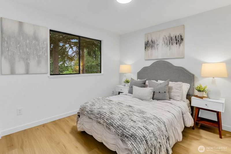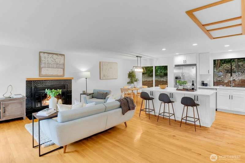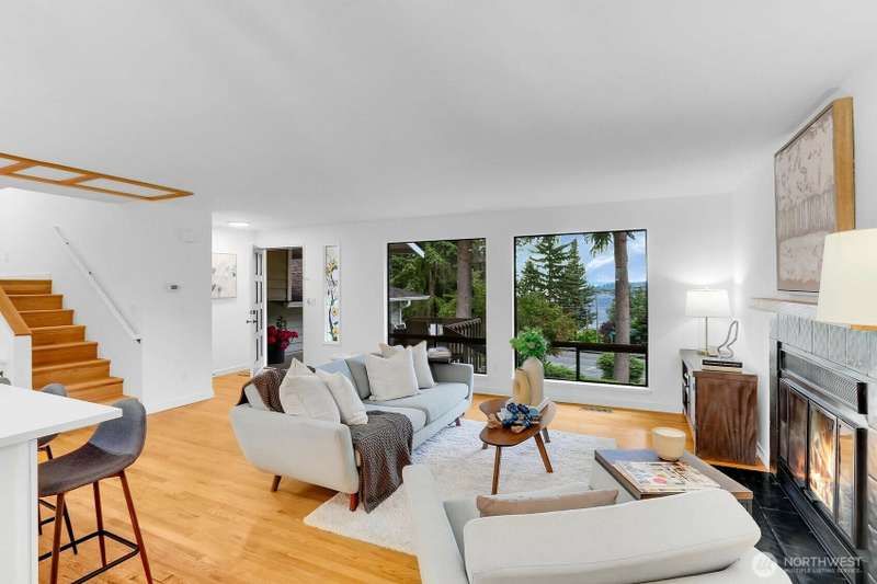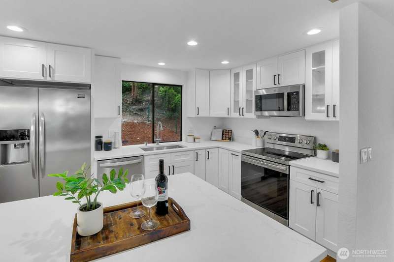 Charming w/partial lake views in desirable Kirkland Juanita Point!! Newly remodeled 3 BRs & 2.25-bath tri-level nestled on a private lot w/matured landscaping. Recent updates include new roof, fresh interior paint, NEW kitchen & baths (cabinets/countertops/light fixtures) + most flooring. Enjoy Lake WA views from main living areas. Primary suite features totally updated luxury bath. All BRs are spacious & conveniently located on the same floor. Open lower level hosts a huge family room, powder room + laundry updated w/all new flooring. Enjoy immediate move-in comfort! A quick commute to Juanita Shopping Center & Beach Park, Easy freeway access to downtown Kirkland/Bellevue/Redmond. Excellent LWSD. Over sized lot offers added potential!!