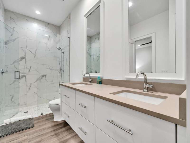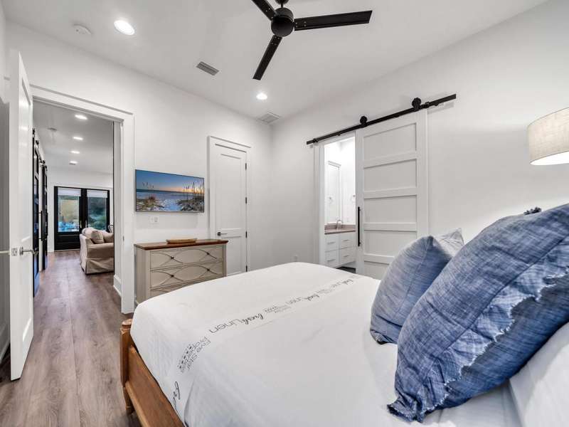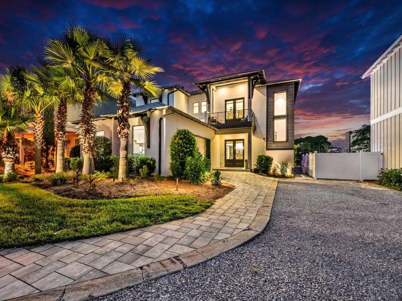 PRICE DECREASE!!!Experience contemporary coastal chic in this custom-built home, located in the private gated community of Emerald Waters Village. Just a short walk from restaurants, shops, and exclusive ''Deeded Private Beach Access,'' the home also offers access to two community pools and has projected rental income exceeding $180,000?making it ideal for investors seeking strong returns.Step inside to stunning floor-to-ceiling windows overlooking the private saltwater pool and a reclaimed wood accent wall featuring a sleek Heat & Glo gas fireplace.The outdoor courtyard, with its heated pool, invites relaxation, while the gourmet kitchen impresses with Thermador appliances, quartz waterfall island, and custom under-cabinet lighting. The first-floor primary suite boasts a spa-like bathroom with a zero-entry walk-in shower and custom dual vanity. Upstairs, find a spacious second living area, five bedrooms including a bunk room.This unique, luxury home won't last long perfect as a vacation retreat or investment property!*Golf Cart NOT Included in Sale*