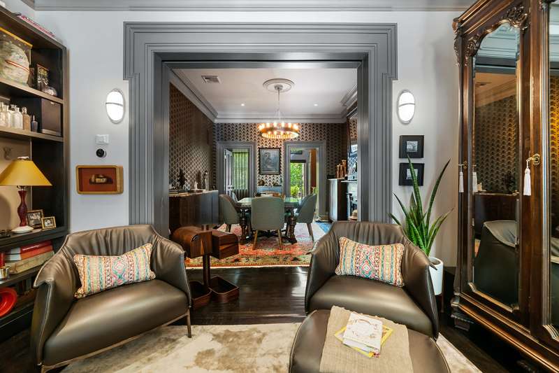 Both townhouses sit above a rusticated brownstone English basement, which lead to a breathtaking private garden planted with ivy and large trees. The properties well preserved architectural details include several ornate fireplace mantles, mid-19th century moldings and parquetry. While each of the 12 houses along the charming setback row was given individual landmark designation in 1970, two of them have already been combined (No 443 & 445).These incredible properties are located on a beautiful tree lined street in the heart of Chelsea's Historical District, close to the High-Line Park, the Hudson River Park, and a wide variety of shops, dining, and easy access to transportation. This combination sale is being co-marketed with Level Group.
