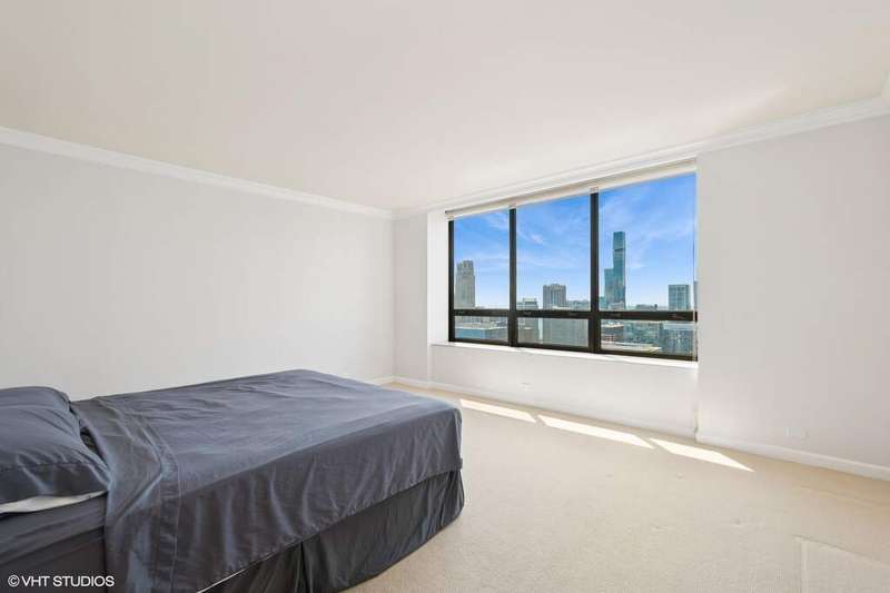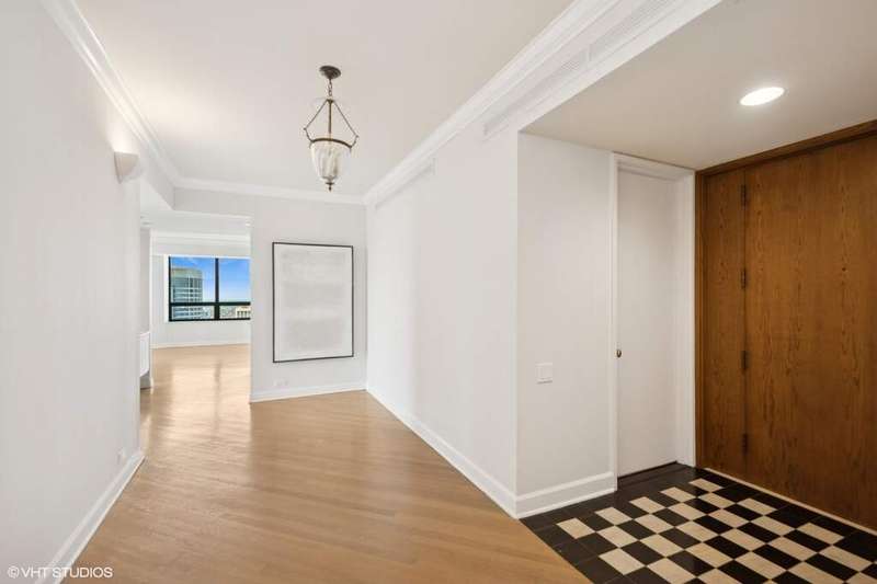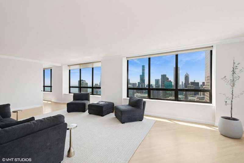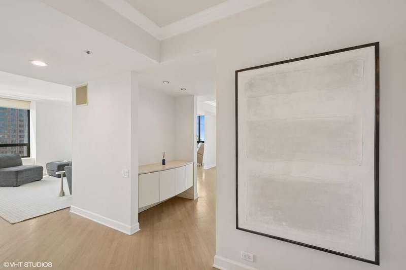 Brand new, high end hard wood flooring and carpeting installed. Experience elevated living in this stunning 2,700+ sq. ft. residence perched high in the distinguished Water Tower Residences. This rare offering captures sweeping views of the city skyline, Lake Michigan, and Navy Pier from every angle, blending luxury with comfort in a way that never goes out of style. From the moment you enter the elegant foyer-perfect for showcasing artwork-you'll sense the thoughtful layout and refined atmosphere that define this home. The expansive living room, with its dramatic panoramic windows, is ideal for hosting or simply unwinding as the city sparkles below. The kitchen is both functional and inviting, featuring a walk-in pantry and open flow into the dining area-an ideal space to soak in mesmerizing sunsets while enjoying a meal. The generously sized primary suite includes dual walk-in closets and two separate bathrooms for the ultimate in privacy and convenience. A second en-suite bedroom, currently serving as a home office and media room, features a full wall of custom built-ins for style and practicality. Set atop the renowned Ritz-Carlton Hotel, residents enjoy white-glove services and luxury amenities: 24-hour door staff and concierge, in-room dining, spa access, indoor pool, fitness center, and optional membership to the exclusive Carlton Club with private dining. Direct indoor access to upscale shops and dining at Water Tower Place makes daily life effortlessly convenient. Valet and self-parking options are available for both residents and guests. With a premier location steps from the lakefront, Museum of Contemporary Art, seasonal farmers markets, and Chicago's best restaurants and cultural venues, this is an unmatched opportunity to create your dream home in the sky.