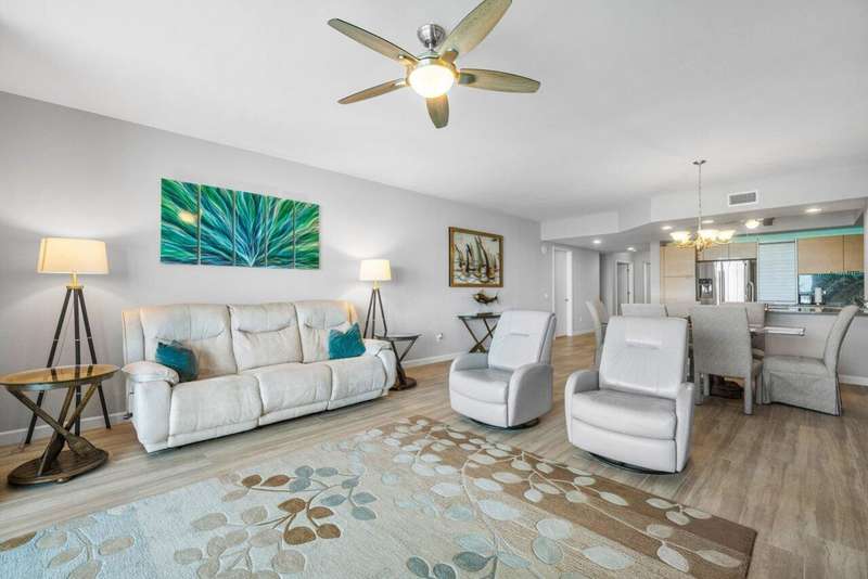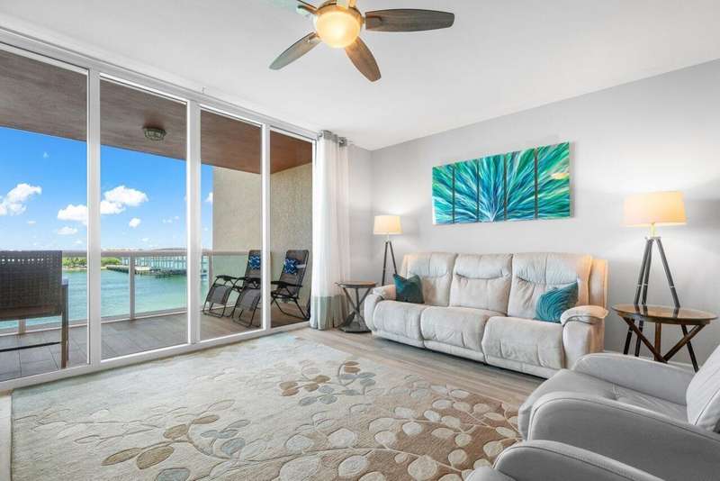 AVAILABLE MARCH 1 2026! This beautifully FURNISHED turnkey residence is waiting for you to enjoy w/incredible Intracoastal & ocean views, great beaches less than 1 mile away. Awesome waterfront views from the large private balcony. 2 spacious Primary Bedrooms & baths w/ king-size beds. 3rd BR w/desk for office use. Redesigned kitchen w/ luxurious appointments. High quality furnishings, large screen smart TVs. New 7th Floor pool deck, w/Olympic size pool, spa, 2 BBQ areas, covered wet bar social area w/fireplace, wrap around glass railings, tennis, pickleball & bocce ball, game rooms & more makes Marina Grande one of the most special waterfront tower communities in the Palm Beaches. High speed Wi-Fi, cable TV & water included.