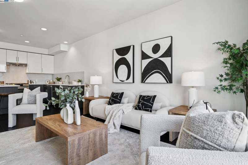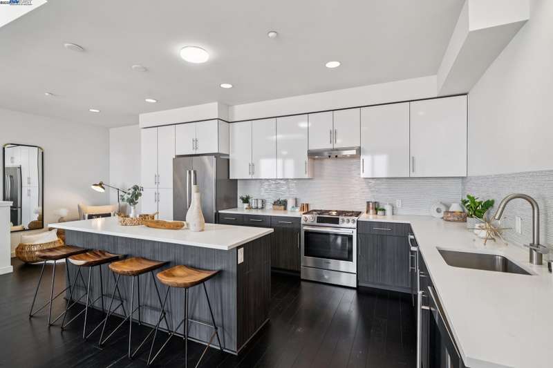 Stunning 3BR/2BA (3rd BR is currently an office). Condo with BayViews in SF Shipyard! Located in a secure, gated building with a 1 car garage, this home offers an open and light-filled living space. The chef's kitchen is an entertainer's dream, complete with an expansive island, quartz countertops, a gas range, wine fridge, and stainless steel appliances. The first-floor primary suite features a walk-in closet, walk-in shower, and serene views. A second bedroom, full bathroom, and laundry are also conveniently located on the same level. The versatile den is perfect for a home office or guest room. Enjoy the vibrant community amenities, including scenic walking paths, a playground, and BBQ areas. You're just a 10-minute drive from South Beach, the Chase Center, and Mission Bay, with easy access to freeways, SFO, and the Peninsula. Plus, exciting new developments like the 10-acre India Basin Park (2026) and the recently opened 900 Innes food court are just steps away!